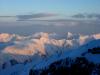 Dette må bli et bilde fra en tur til Georgia og som jeg har som bakgrunn på pc'n. Bildet er tatt i begynnelsen av mai og om kvelden ved foten av fjellet Kazbek. Man ser altså østover. Landsbyen Kazbeki ligger i dalbunnen nedenfor og bortenfor dette ser vi fjellene i den østlige delen av Kaukasus. Masse uberørt pudder her. Gjelder bare å komme seg tilbake dit en dag.