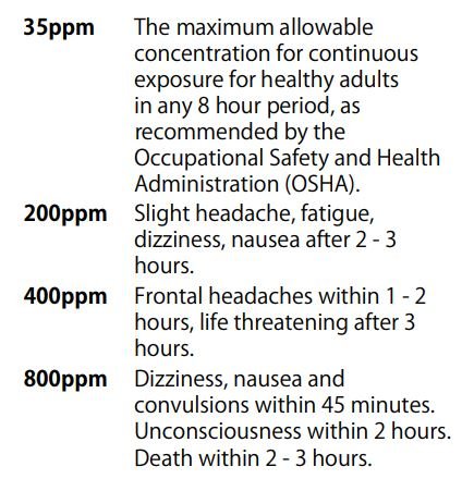 13. Den jeg har har display som viser co konsentrarsjonen i ppm. Da ser man om konsentrasjonen er for høy, og om man bør lufte mer/fyre mindre. Batteriet på min skal vare i 7 år. Når batteriet begynner å bli tomt vises et batterisymbol i displayet, og det kommer et pip fra den hvert minutt.