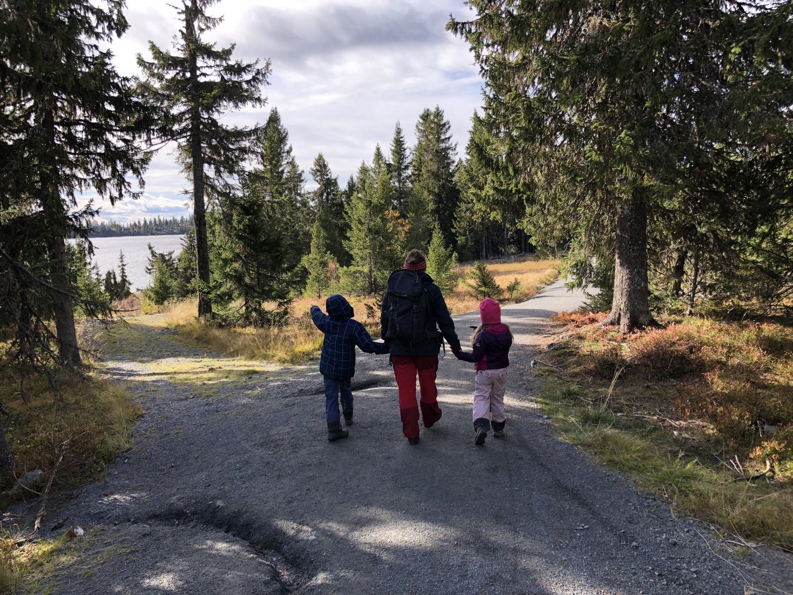 14. Er på høstferie, og hadde i går lyst til å dra med familien ut på tur i det fine været. Siden vi bor rett ved Sjusjøen, så bestemte vi oss for å prøve å gå rundt vannet. Var litt skeptisk, siden jeg var redd turen (ca 10 km) kunne bli i lengste laget for barna på 6 og 8 år... Og jeg må vel innrømme at det ble en del syting fra særlig hun minste de første kilometerne. Men etter en stopp med både kakao, marshmellows og potetgull tødde selv den mest innbitte turmotstanderen opp... Vi tilpasset tempoet etter barna, og tok rikelig med pauser. Turløypa er veldig godt tilrettelagt for bedagelige turgjengere (og rullestol) med grusvei helt rundt, og med rebusposter langs løypa. Etter tre timer og tre kvarter, så var vi tilbake ved hytta, og alle var enige om at vi hadde hatt en fin tur. Det var også utrolig tilfredstillende å se mestringsfølelsen hos barna når de stolte kunne fortelle besteforeldre at de hadde gått en mil! Så selv om man følte seg litt ond i begynnelsen av turen, så var det verdt det!