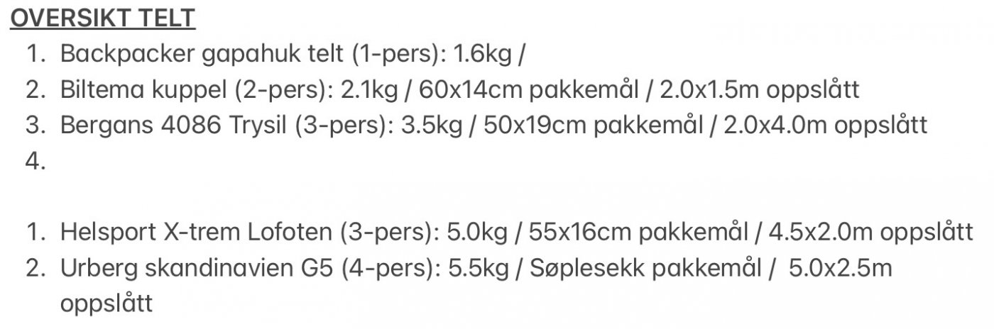 Jeg har disse teltene, men har oppblåsbare liggeunderlag på hhv ca 55 og 65 cm brede. Det ble ekstremt dårlig plass til minsten sitt underlag. Barna er 8 og 10 år. Vi brukte Bergs teltet på denne turen der vi ikke fikk plass. Vi endte opp med å legge de to underlagene på lamgs og vi la oss på tvers, men da endte jeg opp med å få en glippe mellom underlagene ved korsryggen. Max vekt vet jeg ikke, det er volumet som er det største problemet. Men 8kg er liksom uaktuelt om du forstår... Nå ser det ut til at 10-åringen skal prøve å ligge i det 1-manns gapahuk teltet jeg brått husket at jeg hadde liggende. Men om han tør å ligge i det og om det er for dårlig til en langhelg over tregrensa, er jeg usikker på.