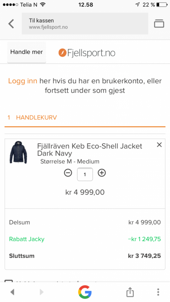 Kjøpte ikke den Brede-jakka jeg klikket oppi handlekurven tidligere i dag. Tenkte meg om i noen minutter og kastet meg over krysset der oppe til høyre. Det resulterte i en ettermiddag med svært god samvittighet. Litt som Moder Teresa, men uten jakke.