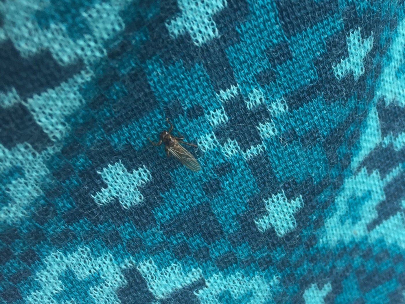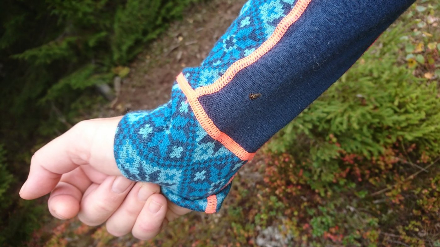 Etter gårsdagens påstand, tenkte jeg det var på sin plass med en test. Tok på meg en blå ulltrøye fra Kari Traa (forøvrig den dårligste ulltrøya jeg har hatt) og satte kurs mot skauen. Trøya var som en magnet på hjortelusflua!! Kunne telle ti ufyser før jeg skiftet til en rustrød trøye. Og med det var problemet løst.
