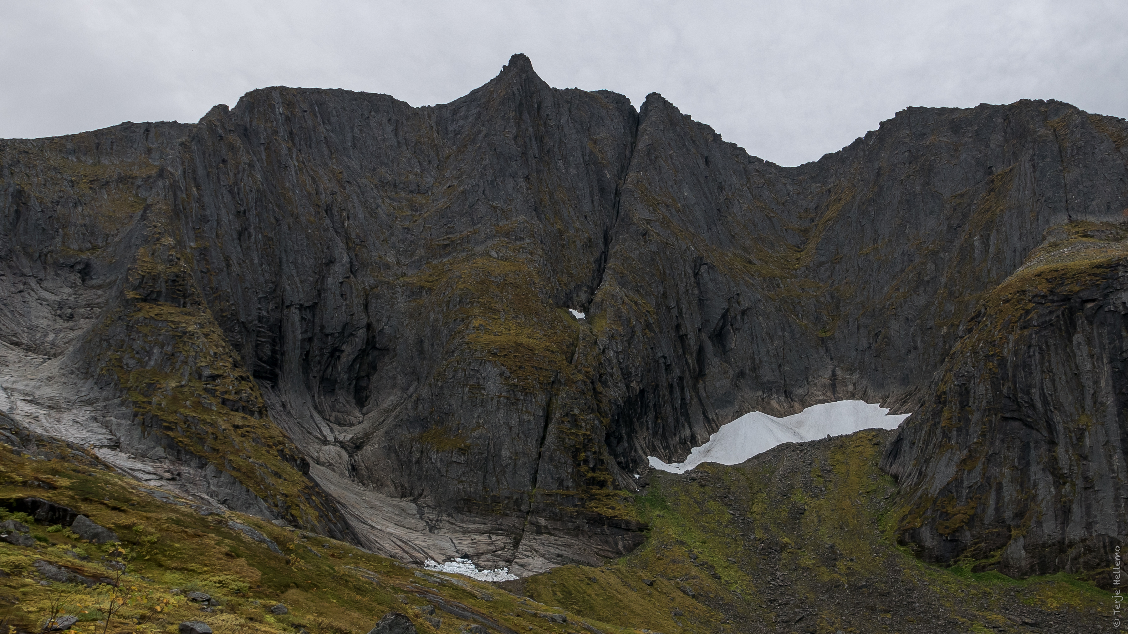 24. Første helga i juli er det meldt strålende vær. @TerjeH og jeg finner ut at bilen skal få stå og at vi skal prøve en nærtur fra A til B med buss som befordringsmiddel. En sein vår betyr at det er mye snø i fjellene og et par rutevarianter blir underkjent ut fra av vi verken har lyst å telte på snø eller krysse noe særlig med elver. Vi ender opp med å velge å gå fra Skittenelv til Kroken. Ikke spesielt langt, men ved å ta det med ro skal vi greie å få plass til to overnattinger. Fredag kl 16:30 står vi forventningsfulle på busstoppet og skal busse oss til Skittenelv Camping. Korona har gjort at det er så lenge siden vi tok buss at bare det i seg selv er en opplevelse. Bussbyttet går smertefritt og klokka 18 er vi klare til å gå innover Skittenelvdalen. (Dersom man har med bil er det stor parkeringsplass vis a vis campingplassen.) Skittenelvdalen er (i motsetning til den meir brukte Tønsvikdalen) utrolig vakker. Grusvei går rask over til skogsvei som går over til sti. Slak stigning gjennom åpen bjørkeskog gjør at man spiser høydemeter uten å legge merke til det. Etter ei lita kneik kommer man opp på en åpen mo der utsikten åpner seg mot Ringvassøya i vest. Bålring og strategisk plasserte sittesteiner tyder på at mange tar turen hit. Vi har allverdens med tid, så det passer godt med en pust i bakken. Etter 5,5 km kommer vi til Nordre Snyfjellvatn på ca 300 moh. Det har vært god sti heile veien med unntak over ei blautmyr. Et par steder endte vi nok opp på sauesti, men terrenget er enkelt og oversiktlig. Ved vatnet er det flere mulige leirplasser med bålring og vi velger den som vil gi oss litt skygge for midnattssola i løpet av natta. Vi ser av vegetasjonen at det ikke er veldig lenge siden snøen gikk. Nydelig kveld med lite insekter (som vi legger merke til), men Termacell og bålrøyk hjelper nok på. Fisken vaker i vatnet og vi kan angre på at det ikke blei med noen fiskestenger. Lørdags morgen blir det rolig egg- og bacon-frokost mens vi nyter finværet og skuler oppover bakken vi skal starte med. Dersom vi fortsetter i dalen videre til Nonsbu vil vi måtte krysse mye myr. I stedet skal vi opp nær elva til høyre i bildet og gå sørover (mot venstre) over Snyfjellet. Dette var dagens motbakke, men det blei varmt og godt i solsteiken. Vel oppe er det utsikt mot Nordre Snyfjellvatn foran Rundfjellet og Trollvassnova. Dalen til venstre går forbi Trollvassbu og ender på Snarbyeidet. Over Snyfjellet er det lett terreng. Etterhvert kommer vi inn på god sti siden fjellet var del av 10-på-topp i fjor. Utsikten mot Tromsdalstind viser at det var korrekt beslutning å ikke legge ruta om Skarvassbu. Det ville blitt mye snøkryssing. På veien passerer vi Nordre Holmevatn. Hamperokken stikker opp bakerst. Så kommer vi til Søre Holmevatn. Vi krysser DNT-stien i retning Nonsbu og tar en god lunsjpause i vannkanten. Tromsdalstind i midten. Vi kunne fulgt DNT-stiene til Nonsbu og videre til Blåkollkoia, men veit at vi da må krysse ei flomstor elv i tillegg til at det er en omvei. I stedet går vi i terrengt i retning Søre Snyfjellvatn. Litt kryssing av sommersnø må man da tåle. Ved Søre Snyfjellvatn møter vi to damer som hadde gått fra Snarbyeidet via Nonsbu. De elvene vi hadde sørget for å unngå hadde de vadet til midt på låret! De satt og koste seg ved vatnet og passet på ei fiskestang, selv om ingen av dem noensinne hadde fått noe her. Vi ser nå Rundfjellet fra sørsida. Vi går videre over kanten og følger et bekkefar ned til Tønsvikdalen. Det viser seg at der DNT-løypa lenger øst går gjennom alle tilgjengelige blautmyrer, er vårt stivalg både tørt og lettgått. Ikke langt fra der vi krysser vinterløypa finner vi oss en tørrmo og slår leir. 9,5 km og 330 høydemeter er en passelig koseetappe. Det er tydelig at mange har pause i området om vinteren. Et par hundre meter unna er det reine svinestien. Vi plukker med oss et fullt bærenett med søppel. Det er for tørt til at vi tør å tenne bål. I stedet blir det å rulle i lyngen og la humla suse! (Den puslete bjørkeskogen skyldes fleire år med lauvmakk.) Tur-radio er tingen! Etter nok ei god og varm natt er det på tide å gå heim de siste 9 km. Vi følger DNT-stien innover i dalen og krysser Tønsvikelva ved Blåkollkoia. I dag skal vi følge sti heile veien. Vi får litt stigning i dag også, men stien er lagt slakt oppover lia, så det merkes ikke. Godt merket, så det er vanskelig å gå seg bort. Vel oppe på 400 moh er det et goldt landskap som møter deg. Slik er heile platået bortover. Vi har ikke gått akkurat denne stien før, men den er godt merket og god og gå. Etterhvert møter vi fleire og fleire som er på søndagstur i retning Blåkollen (som er med i årets Ti-på-topp). Endelig dukker Tromsøya opp. Vi ser huset vårt! Kvaløyfjellene i bakgrunnen. Man skjønner hvorfor Store Blåmann også kalles «Karl-Johans nese». Når vi nærmer oss Kroken er den siste delen den mest uhensiktsmessige DNT-stien vi har vært borti. 250 bratte høydemeter rett ned (ev. opp) uten en eineste sving. Vi blir enige om å aldri ta denne ruta opp på fjellet! Mens vi venter på bussen heim er det akkurat tid til en brus og is på kiosken på Krokensenteret. Og alle var enige om at det hadde vært en fin tur! Ruta vi gikk. Kan nok fint gjennomføres som en dryg dagstur. Vi merket ikke mye til insekter underveis. Men de var nok der. Etterhvert kom den søte kløen og jeg oppdaget at jeg hadde minst 30 stikk rundt hver ankel. Og selvbeherskelse på linje med en 4-åring når det gjelder å klø. Gubben hadde det ikke stort bedre. Han hadde gått i Fjellräven-shorts med lufting på lårene og endte opp som kjøttkake fra hofte til kne. - Hvem husker på å spraye myggmiddel inni buksa?