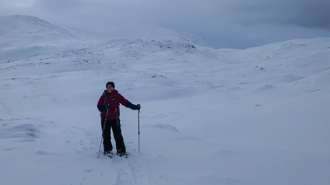Det har kommet litt snø, men for lite til å gå på ski. Da får man prøve noe nytt for å komme seg ut av døra. @TerjeH har kjøpt seg truger, og siden ingen av oss har hatt truger på beina før kjørte vi opp i Finnvikdalen for en prøvetur. Etter to timer med høye kneløft har vi fått litt følelse med teknikken og ikke minst hvilken type terreng vi ser er best egnet til trugeturer. Det er også her en fordel å være langbeint. Ingen fartsrekord på kilometeren, men deilig å komme seg ut.