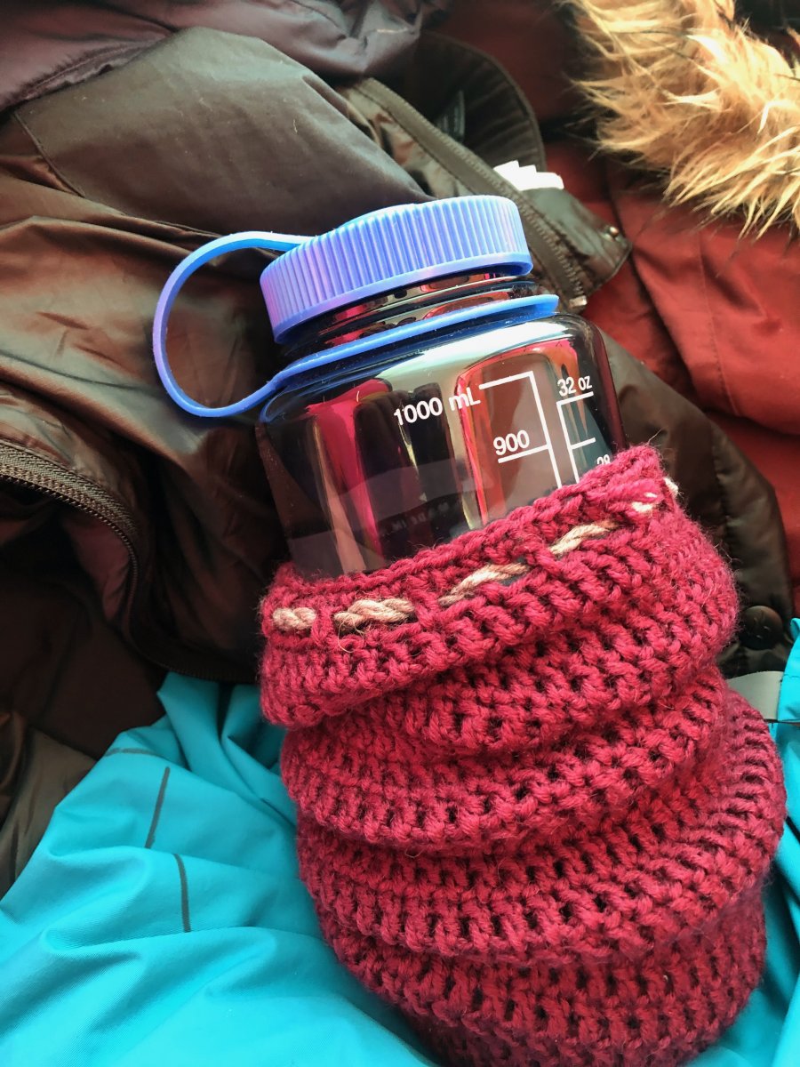 Noen av oss er så fisefine at ullsokk ikke er bra nok. Heklet ulltrekk til Nalgeneflaskene har fast plass i soveposen sammen med en oppblåsbar hodepute. Når man må tine snø til alt av drikkevann kan man ikke kaste bort dyrebare dråper til gummiflasker. Veldig greit med kroppstemperert utgangspunkt til frokosten.