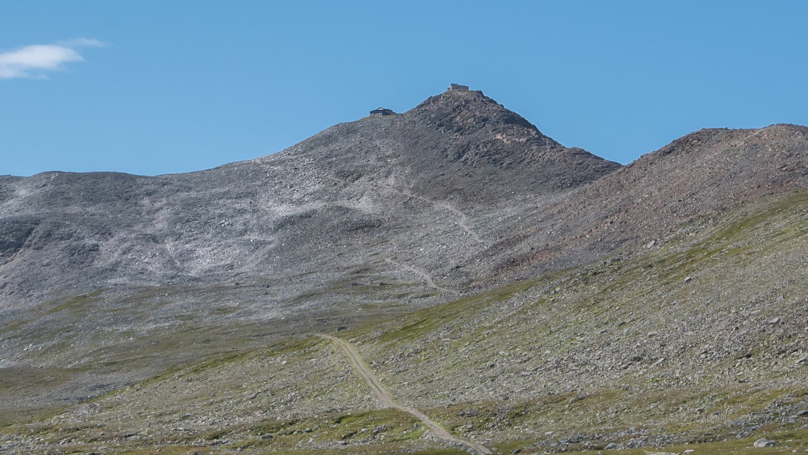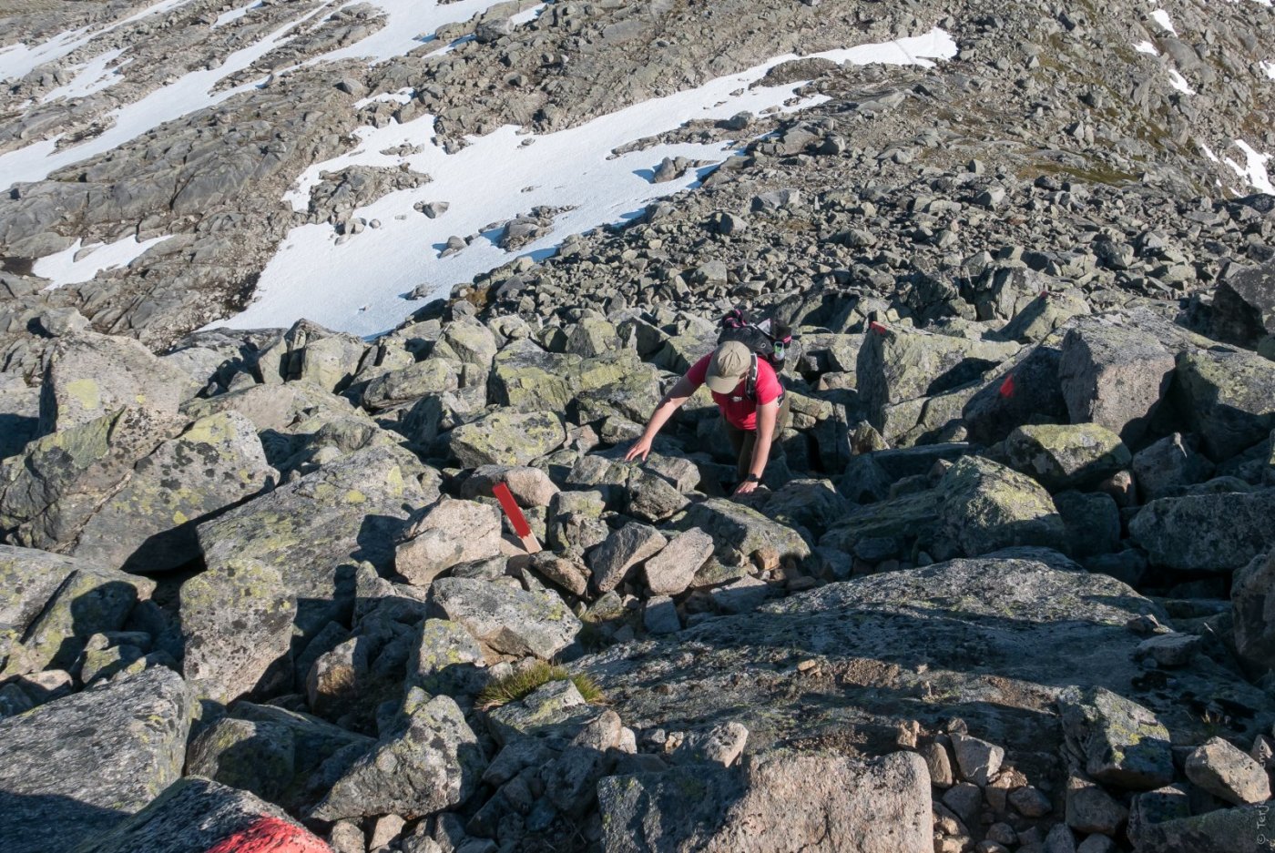 Jammen skulle det ikke bli godvær på torsdag også! @TerjeH fikk beskjed om å stable om på dagens møter slik at vi kunne avslutte dagen tidlig. (Hvem kaller inn til møter i juli?!?). Dagen opprant med skydekke ned til 200 meter, men "han skein han av". Dagens mål var en i utgangspunktet navnløs topp 794 på Kattfjordeidet, men i anledning Ti-på-topp og krav til publikumsvennlighet har den fått navnet Soria Morias fortopp. Dryge 600 høydemetre fordelt på 4 km burde ikke være avskrekkende, men det blei en tung tur siden terrenget bare besto av blokk-ur som krevde både høye kneløft og freske fraspark. Foreløbig med lette fjed. Vi skal opp på venstre side av elva og innover mot høyre. Navnløs skitopp 884 til venstre. Etter mye pust og pes er de siste 100 høydemetrene i sikte. Godt og turistvennlig merket i den verste stigningen. Her er det greit å ha gode sko og tørrvær. Belønningen: Utsikt mot Ersfjord og (fra høyre) Buren, Store Blåmann, Hollendaren (ev dem) og Styrmannstinden. Utsikt mot første del av Soria Moria-traversen: Leirholstinden og Storsteinnestindan. Ja, da var det bare returen igjen. Ser i alle fall veien i det fjerne. Slik kan man også tilbringe en finværsettermiddag.