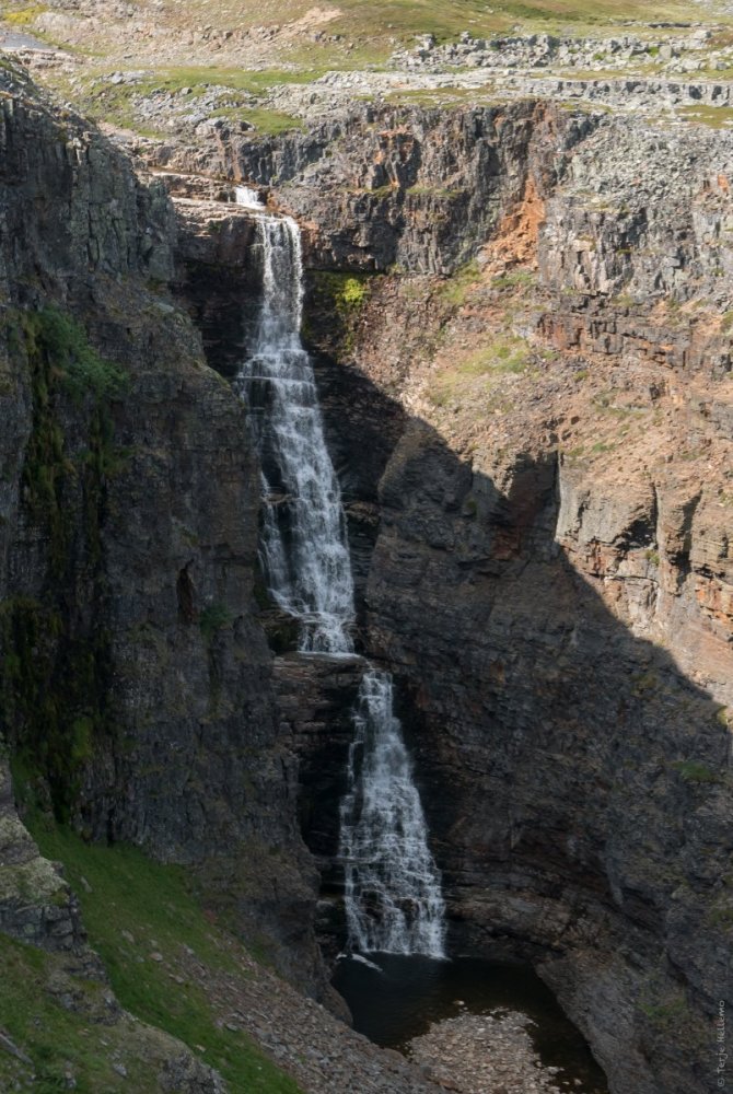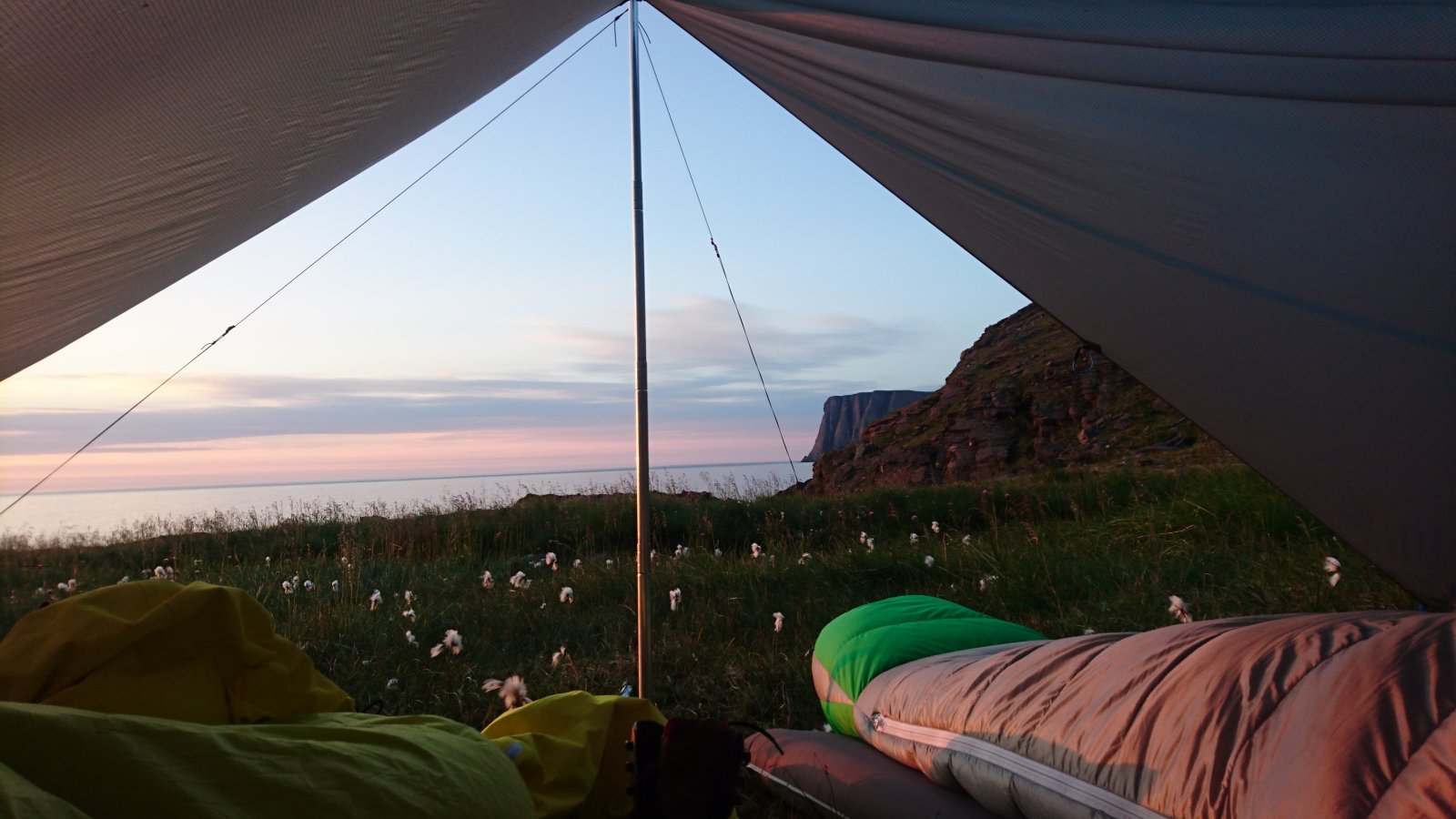 @TerjeH og jeg holder på å avslutte en dryg ukes Finnmarksturné i strålende sommervær (og så godt som uten mygg!). På veien kjørte vi inn i Kåfjorden i Troms og besøkte finsk og norsk Halti. Usannsynlig mye ur! (Kanskje blir det egen turrapport herfra seinere) I Alta var vi som tidligere nevnt innom Alta canyon, men dagen etter måtte vi selvfølgelig en tur til Sukkertoppen (Haldde) og besøke Birkeland og de andre nordlysforskerne. Nordkapp-eierne kunne se langt etter pengene våre. Vi gikk heller til Knivskjelodden og tilbrakte natta under tarp i Knivskjelvika med utsikt mot Nordkapp. Mens andre holdt øye med måneformørkelsen, passet vi på at sola sto i nord over odden presis ved midnatt. Tropevarme og vindstille morgenen etter gjorde at returen opp bakkene gikk meget sakte. Dagen i dag blei tilbrakt i Varanger nasjonalpark med rundtur rundt fossen i Nattfjelldal ved Vadsø. Heldigvis hadde vi en svalende laber bris oppigjennom bakkene, eller hadde vi kovnet i 28 graders varme allerede den første kilometeren. Men nå må man visst heim og berge potteplanter og akvarier fra tropevarmen i Tromsø.