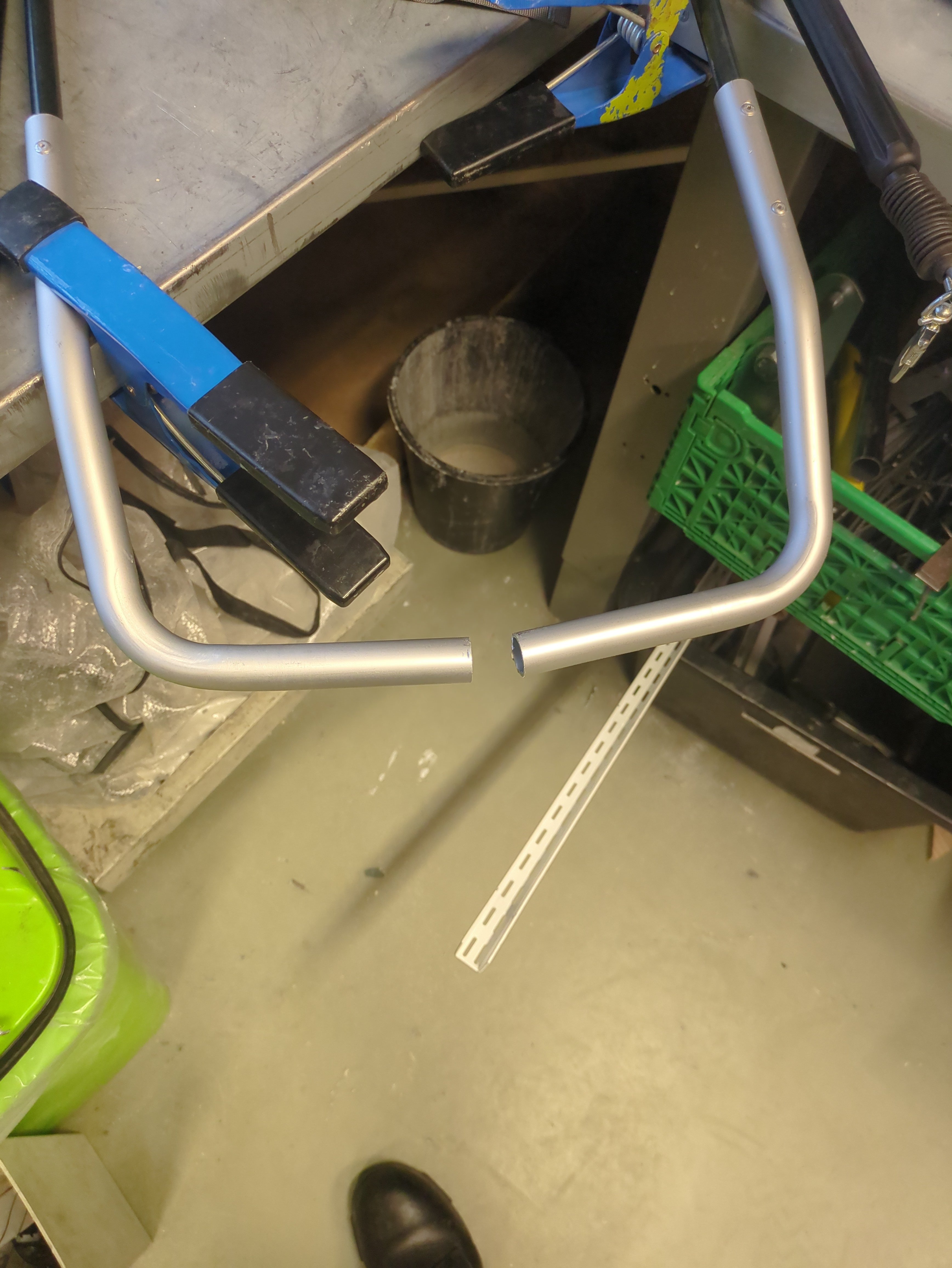 Fjellpulkens drag er som kjent fra denne tråden for smalt til å brettes over de nye pulkene. Jeg så derfor for meg at en løsning kunne være å bøye til et nytt rør som er litt bredere enn det gamle. Røret har 22mm ytre diameter og 2mm veggtykkelse. Trenger ca 900mm lengde. Jeg fant naturligvis ingen aktører som solgte dette over disk, så da ble det plan B: kutte røret på midten og sette inn et 18mm skjøtestykke!