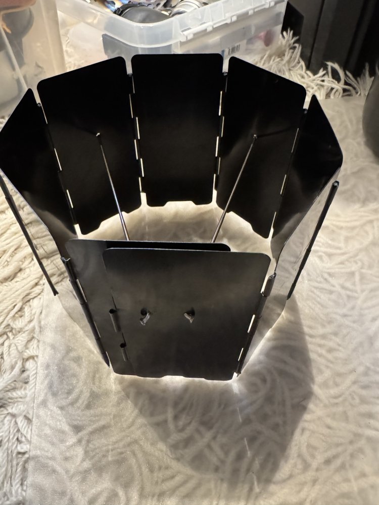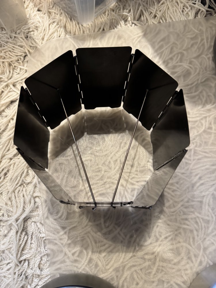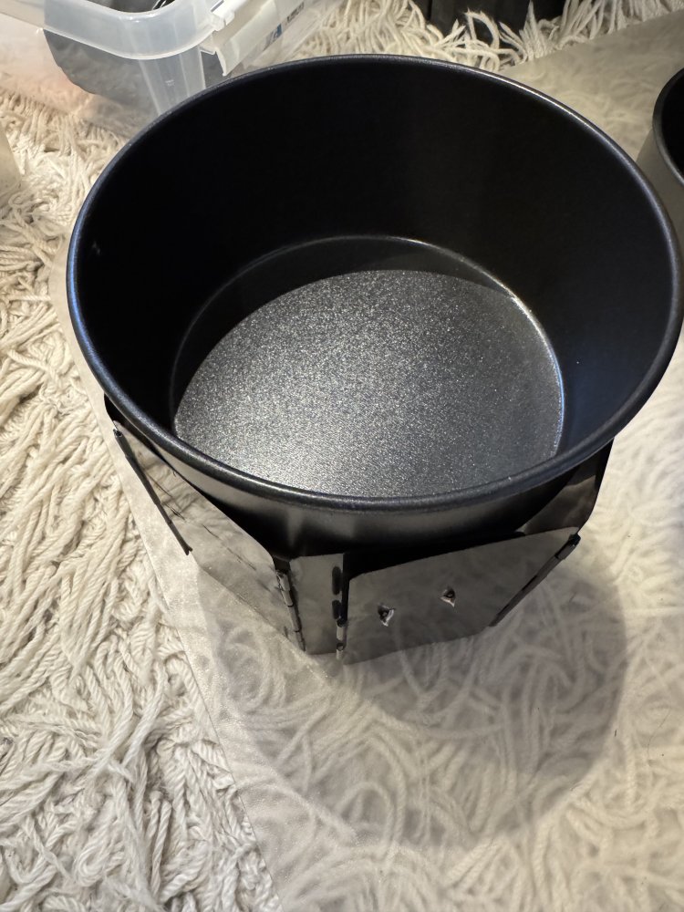 Hva skjer hvis et Toaks spritbrennerkit og stormkjøkken fikk et barn? Kanskje noe ala dette? Har brukt standard vindskjerm ala Biltema etc, og to stk vanlige 2mm sykkeleiker i stål. Funker ganske bra