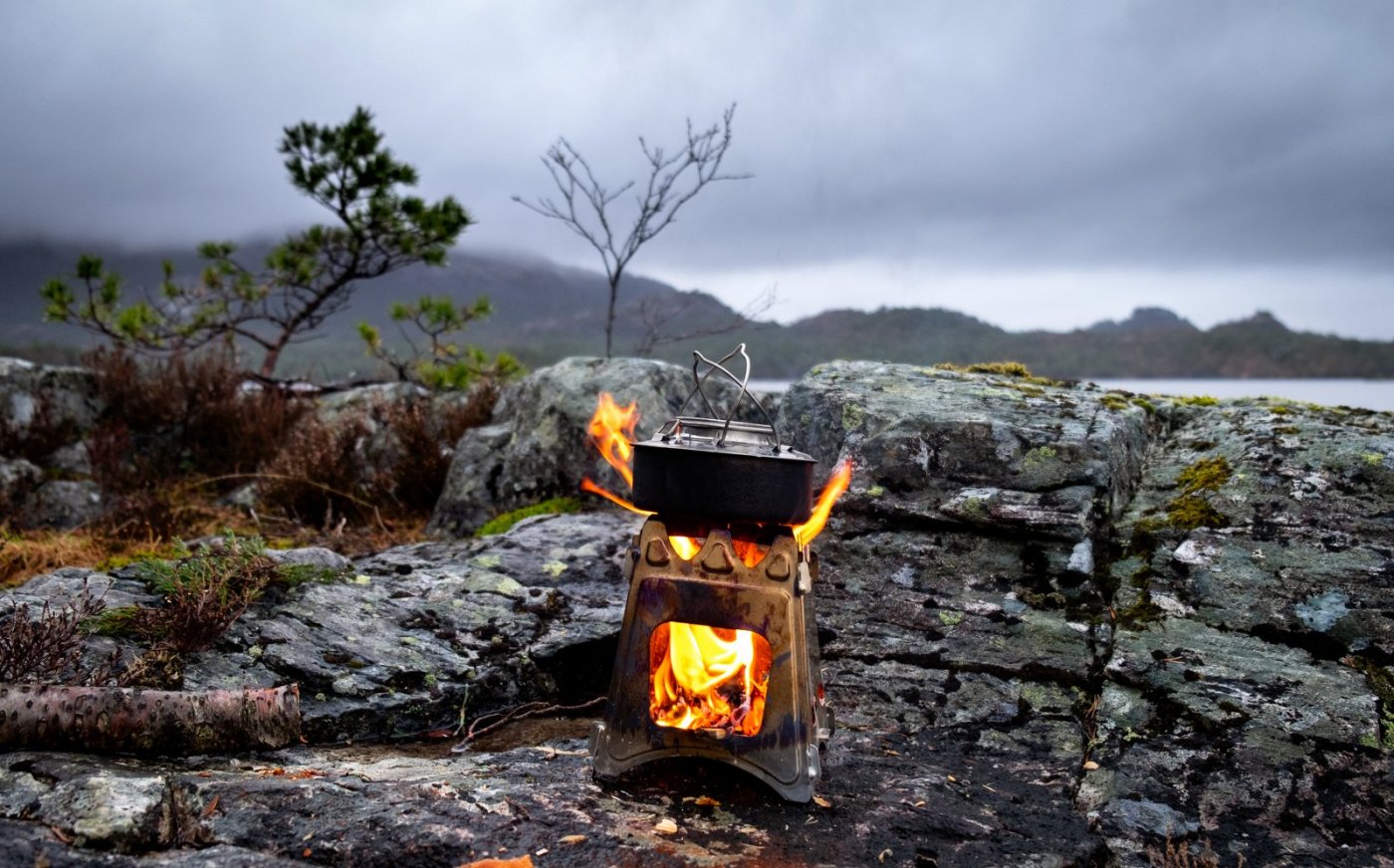Jeg kjøpte en rimelig kvistbrenner på Aliexpress i fjor for å finne ut om dette var noe for meg. Er egentlig godt fornøyd med den lille saken, jeg drar den gjerne med meg på fisketurer hvor jeg ikke skal gå langt og ønsker muligheten til å koke litt kaffe. Det eneste som er kjedelig med den er at den er noe knotete å demontere, det gjør at jeg ikke gidder å flatpakke den og heller drar den med meg ferdig montert. PS! Bjørken nede til venstre ble ikke skadet av meg, den var dessverre død allerede når jeg ankom holmen. Har vanskelig for å forstå hvorfor folk sager ned friske trær når det finnes rikelig med dødt brennmateriale. Når det attpåtil ikke blir brukt til bålet forstår jeg enda mindre. I dette tilfellet var treet skjært av ca. en meter over bakken også, merkelig. 😞😕