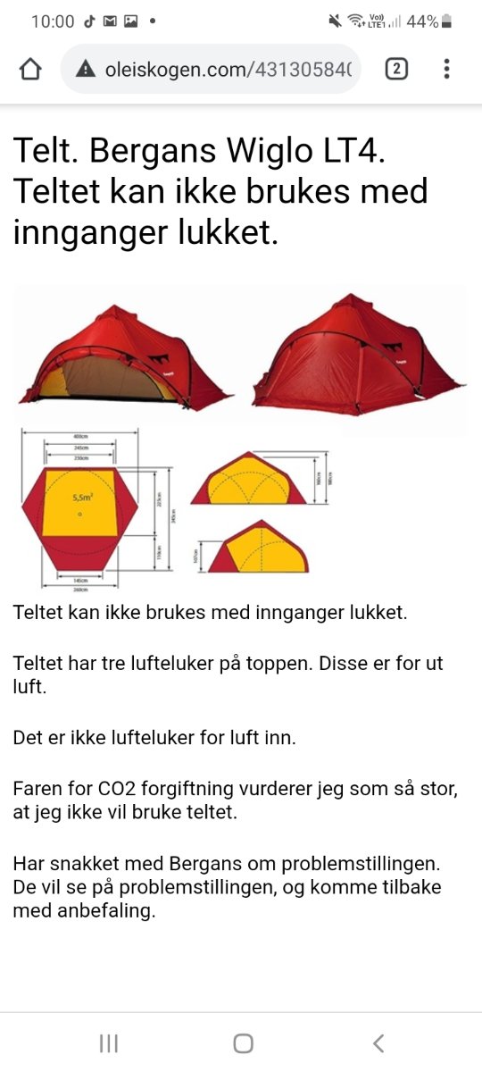 22. Sitter å vurdere ulike telt til Norgesferien. Jeg syns at Wiglo LT4 virker som er spennende telt. Jeg ble imidlertid litt urolig av å lese at eneste lufting er i taket. Hvordan er dette på vinteren i høyfjellet hvis det pakker seg snø rundt? Bilder fra: http://www.oleiskogen.com/431305840
