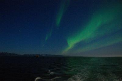Til dette bildet har eg brukt ISO 6400, 17mm (DX), f/2.8 og 1/2s eksponeringstid (eg var på båt i fart, så stativ ville vera ubrukeleg). Med stativ på fast underlag ville eg redusert ISO-verdien nokre hakk og brukt litt lenger lukkertid.