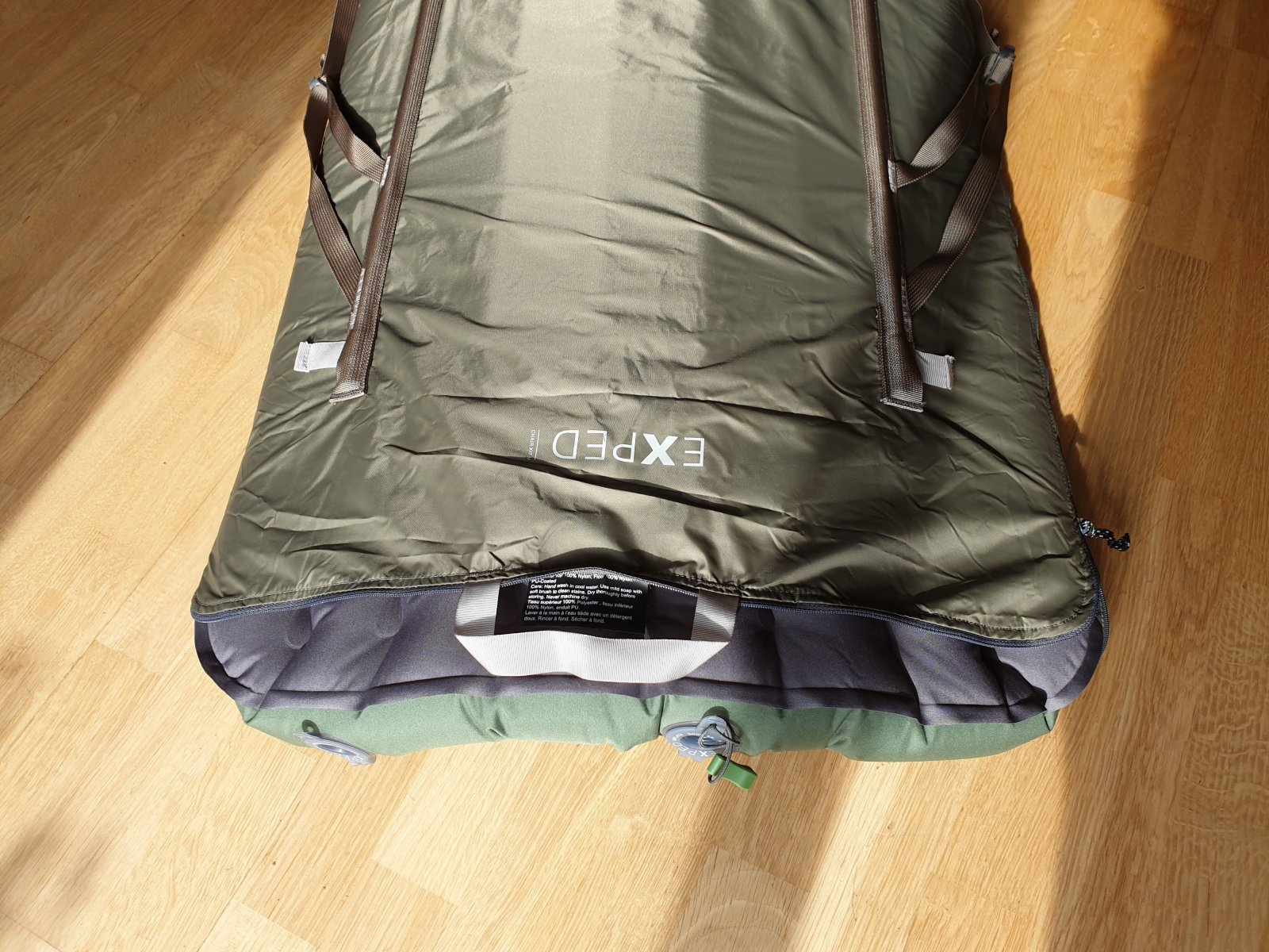 Jeg sendte over bilder og hadde en prat med hyggelige folk på Exped etter innkjøpet. De sa det jobbes med ny modell som skal passse til de nye 3D7-underlagene. Inntil da er løsningen å slippe ut luft i underlaget når det skulle være i trekket og brukes som stol etc. For min del betydde det at jeg måtte velge mellom å ha trekket på og ligge på et slapt underlag, eller ta av trekket på natta. Det ble for mye styr. Jeg var også bekymret for glidelåsen (som Marius skriver). Jeg endte med å returnere begge trekkene. Nå planlegger jeg så sy eget trekk/stol. Foreløpig har jeg imidlertid ikke funnet ut hvor jeg kan få kjøpt lette, egnede stenger. Kom gjerne med tips! -