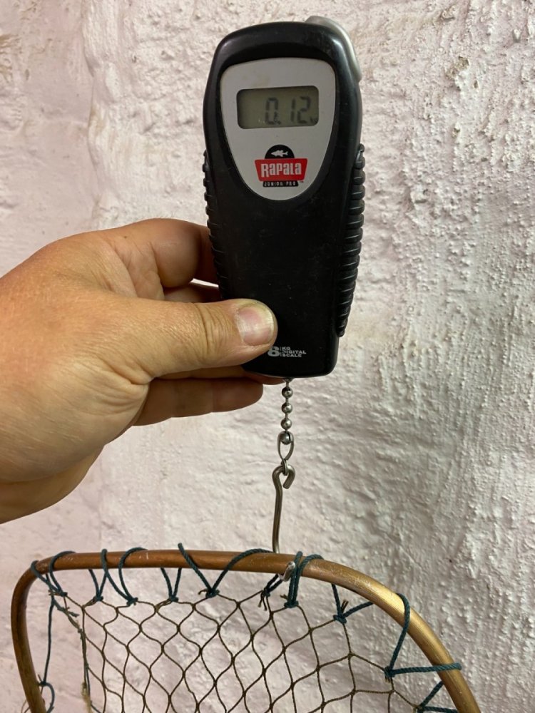 De fleste enkle alu-håver av liten størrelse, er vel rimelig lette. Jeg kjente tilfeldig på en slik på XXL nå nettopp, og den veide ikke rare greiene.