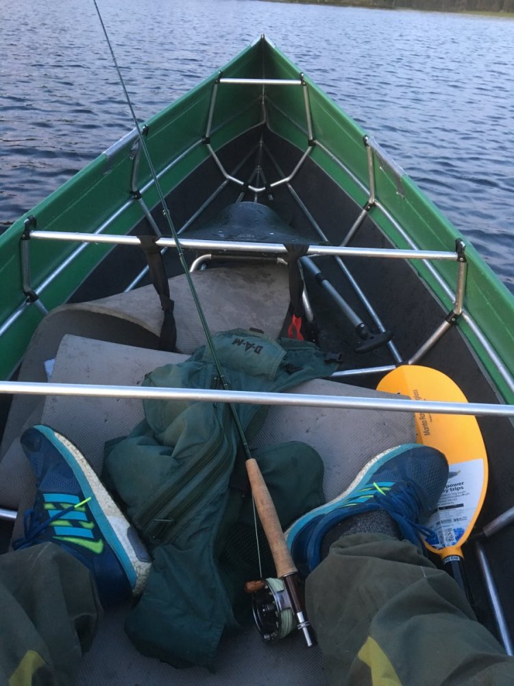 Jeg forsøkte dette sist sommer, vel vitende om at 8 åringen i front ikke ville bidra all verden. Den kajakkåra jeg har er den jeg bruker i packraft. Den er nok ganske kort. I kano betyr dette at åra må løftes ganske høyt ved padling. Dette innebar igjen at det raskt kom ganske mye vann inn i kanoen. Jeg droppet derfor denne åra. Jeg har ikke skaffet meg en kajakkåre dedikert til kanopadling, da det tross alt fungerer greit med vanlig kanoåre. Men ideen ligger og lurer ....🤫 Jeg slenger med en «selfie» fra ekstremt doven solopadling i en Ally 15. Kajakkåra ligger i opplag nede til høyre: