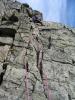 Geir på vei opp den sørligste av de to (3+). En kortere (6-7m) variant 10-15m lenger sør var antagelig letteste adkomst. Vi kom vel til at den var på 3-tallet den også?