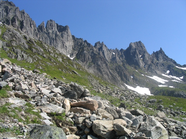 Trodde jeg hadde gjort det vanskelig...., Mohns topp og Mohns renna ja. Her er i allefall resten av bildet. Kjent syn for de som har teltet ved Molladalsvatnet