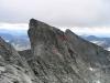 Tror det kan være dette bildet du refererer til, har tegnet litt. Bildet er det største jeg klarte å lage med litt kvalitet, og innenfor max størrelse Du kan gjøre flere rutevalg i nedre del, har tegnet inn ca de to jeg selv prøvde. Mest utsatte punktet på ruta er markert. Øvre del er sånn ca tegnet rett, rutevalget gir seg selv når man klyver opp er markert hjørne/renne med flere gode trappetrinn. Den vanlige klatreruta går til venstre for (ikke synlig her) og opp på egga til venstre. Sva i første del, deretter et 3-4m bratt hjørne.