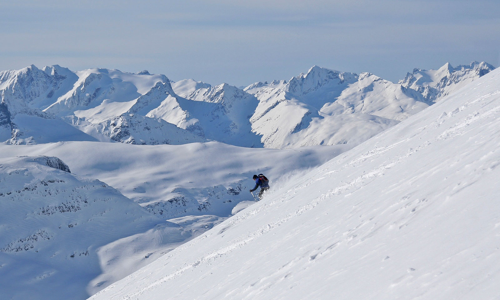 16. Første bildet likte jeg veldig godt, Storekopptindane og den 1112-toppen ved Risaskaret utgjør ei flott egg. Romedalstinden blir ikke rettferdiggjort her... Fuglene var prikken over i'en Svinetind 1125 har ei ganske fin helling mot Fossane, ikke noen som har gått denne på ski vel..?