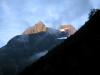 Litt før halv 7 i går morgen fikk jeg tatt dette bildet av Høgenipa og Langenestinden. Det var mye lave tåkeskyer, men i mellom fikk vi glimt av topper i morgensol.