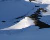 FLAdalen er det riktige ja, kartet er feil. Kameraet låg i sekken i det vi kom ned til vatnet, tok et bilde fra Søre Snarhornet der vatnet er i nedre del. Legger ved et lite utsnitt, akkurat forbi den snøløse hammeren er det utsatte partiet. Kan på bildet se ut til at vi kunne holdt 50m høyere opp og kommet over skavelen på den måten... Jeg kan ikke huske annet enn at det var bratt opp der, muligens loddrett langs skavelkanten. Kan ikke si det sikkert. Fra hvor bildet er tatt fra er det ca. 400m ned til vatnet. Snøforholdene var meget bra, hvis du ser vekk fra under 6-700m Det er normalt med 2-3m snø (eller mer) på disse høydene, så da blir det litt å tære på også. I år har det vært særs mye snø sent. Jeg gikk over Søre Snarhornet, Nordre Sætretind, Lissjehornet og Nordre Snarhornet også 4.juli 2001. Da var det vesentlig mindre snø. Jeg kjente meg ikke igjen opp under Nordre Sætretind pga den store snøfonna som låg opp langs ryggen. Der gikk jeg opp i bart terreng.... -