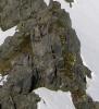 Jeg stoppet ved varden, enkel klyving videre ned i skaret mot sør, kanskje 5m ned? En vanskeligere hammer opp på høyeste punktet. Ikke særlig egnet for plastsko... Fra skaret mellom "toppene", lå snøen helt opp til. Jeg såg derfor ikke hvordan terrenget var ned der. Bratt ja, en mulig stegjerns-adkomst til toppen. Et par sprekker ned i der nå så sent på "vinter'n" -