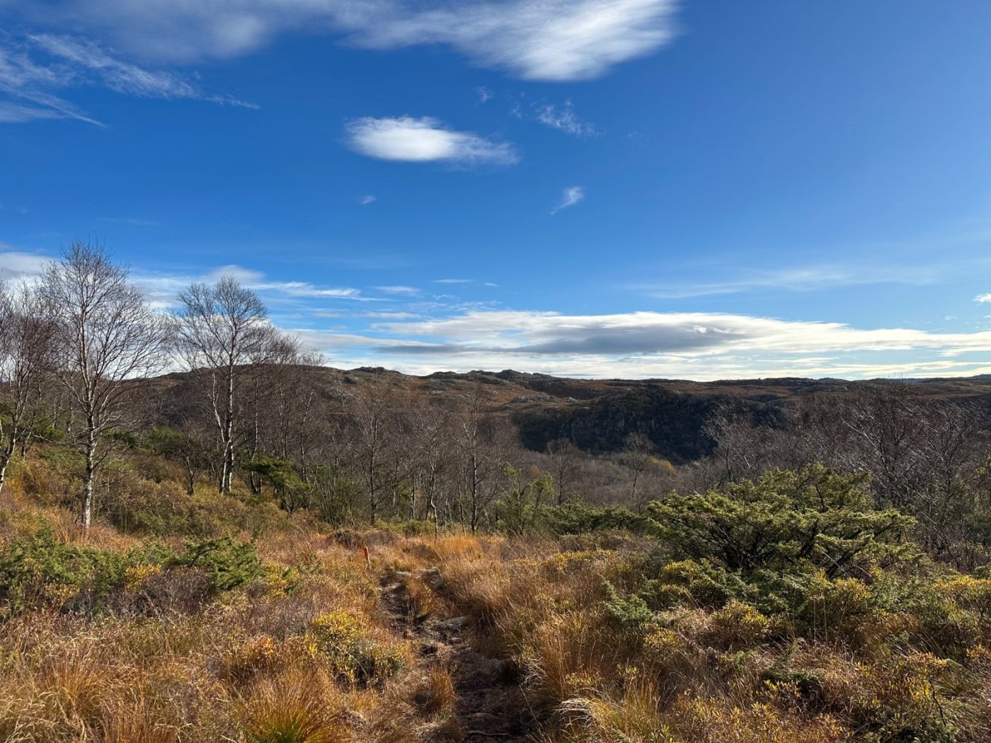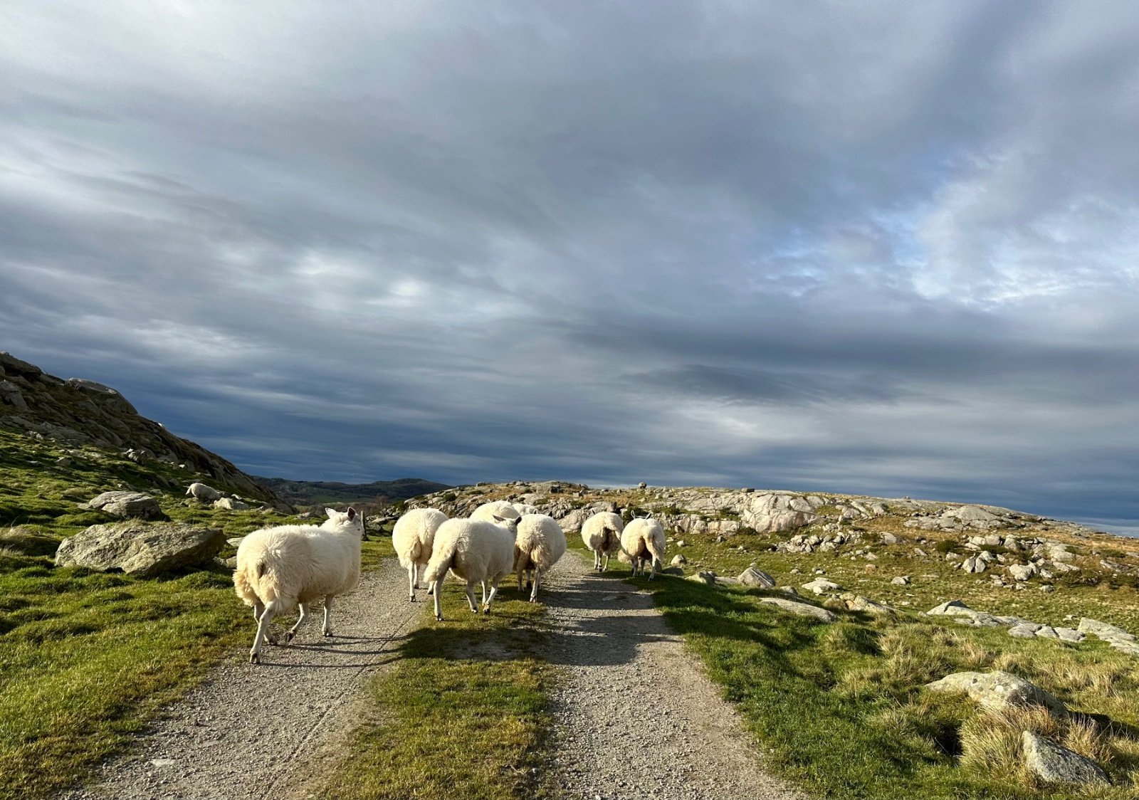 @rejohn - bildet er fra tur til Brusaknuden - gikk via Karten så før oppstigningen til Brusaknuden. Men det er ikke helt nytt (men god illustrasjon av kyr i turløyper) så vet ikke om de fortsatt driver med det. De andre bildene er fra rundtur ved Grimslifjellet i Sandnes. Ble jo kortere tur med å droppe å gå gjennom porten (men via porten kommer en jo etterhvert ned til det beitet der det andre bildet var tatt og må over det også..). Jeg har vel møtt høyfjellsfeet ved Skogen også - men der blir jeg av og til blitt stoppet av elva også (det er det andre jeg er pysete for..) så en stund siden jeg har gått der. Like greit? Kyrne som løp etter meg og også de jeg måtte passere nå i helgen ved å dytte unna en som gnagde på en gjerdeklyver var ved bursfjellet - på hver sin side.. så tryggeste vei dit nå er fra ålgård (står kyr der og..men tenker det som regel er mulig å passere om de ikke står ved gjerdeklyveren). Synes ikke kyrne reagerer like lett som hester når jeg ber de flytte seg. Bruker gåstaver og stemme. Er vel redd for at de istedet for skal komme mot meg når jeg jager.. På gården der jeg hadde hest jaget vi jo flokk med 10-12 hester inn fra jordet. Da viftet jeg i tillegg med jakken om jeg ikke fikk fart på dem. Gikk da forbi den bakerste og ville jo ha de opp i god fart for å få alle med inn.. Jager jeg kyr bakfra går de jo gjerne bare videre på den veien jeg skal så ser ikke helt at det er løsning. Får bare prøve å tøffe meg opp og bruke litt mer lyd. Ellers må jeg jo vente til vinteren med de fineste turene.. Vet det finnes kvegdriftsturer til hest (bla på Kvistli)- ser morsomt ut - kanskje det er en ting for å eksponere seg for kyr (selv om hesten nok løper raskere enn ei sur ku så har en vei ut da?) Jeg har jo vært i tenkeboksen på å få meg hund siden jeg ikke har hest lengre - men tror jeg må tenke litt til på det nå ja.. og så dropper jeg bærspann (godt tips).