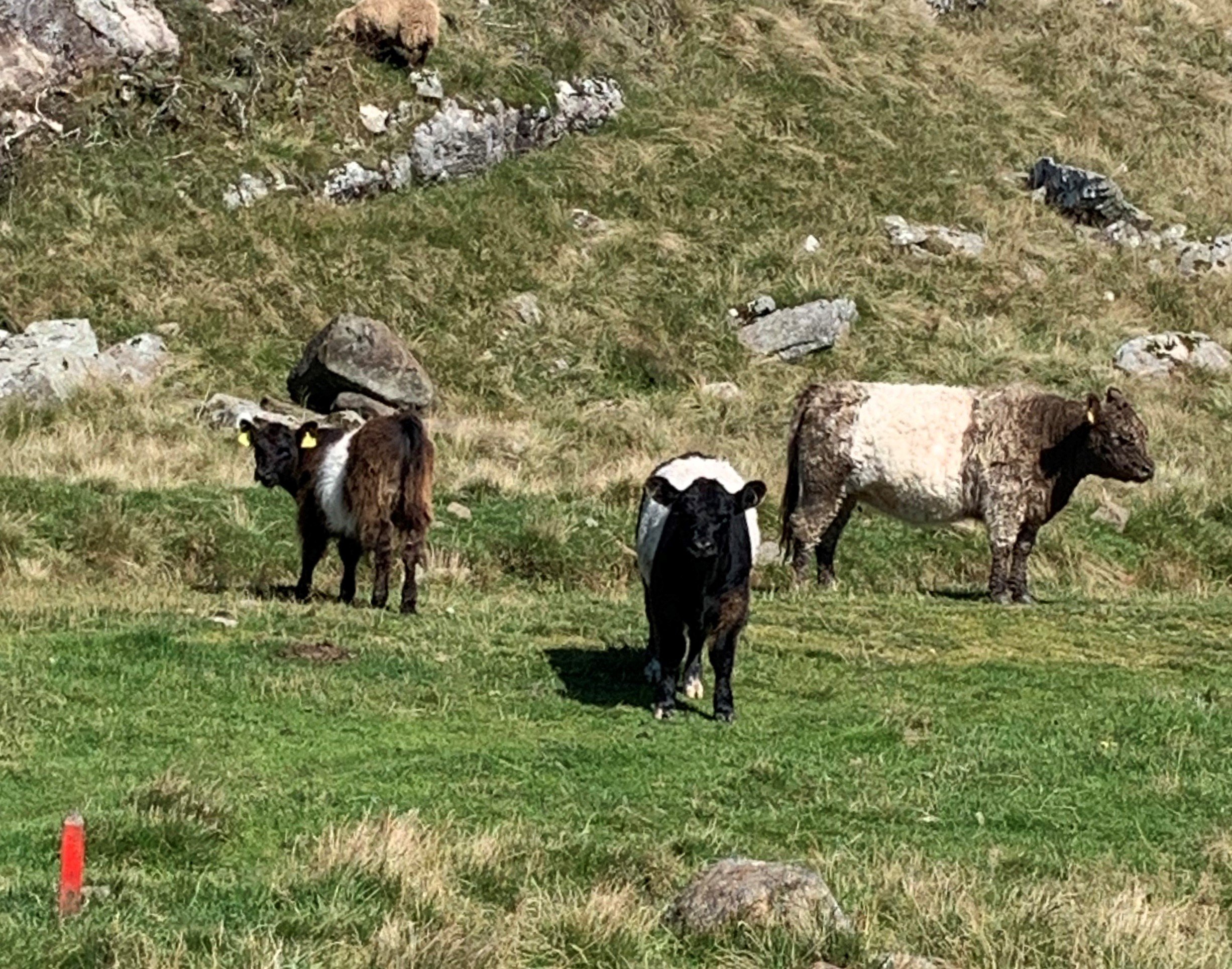 Jeg er generelt litt pysete av meg men har jo alltid tenkt at det å gå på tur er ikke særlig farlig.. Men nå har jeg fått en ny skrekk - nemlig kyr. Og det vrimler av dem i turområder i Rogaland. Toppet seg for 2 uker siden. Kyrne sto på ei mark og det var en elv mellom marka og veien men med ei "bru" for traktorer (elva gikk i rør). Jeg vurderte det dermed som greit nok å gå på veien. Men da jeg passerte kyrne løp de først motsatt vei på marka - og så plutselig løp hele flokken opp på veien bak meg. Heldigvis var det ferist foran meg så jeg slapp å løpe så langt.. og kyrne stoppet før feristen.. Dette var en umerket løype og bonden hadde jo kanskje med vilje satt kyrne med kalver der (men var en ku med kalv på merket løype også denne helgen). Jeg treffer jo kyr "overalt" - både med og uten kalver. Og de stopper meg mer og mer når de står i veien og det mangler muligheter til å gå rundt - da snur jeg om ikke det er uhorvelig langt..da hender det jeg stopper og venter og håper det kommer folk. Gikk en tur ved sjøen for en tid tilbake der jeg valgte rullesteinene som de fleste der gjorde (mye folk) men han som gikk på gresset fikk seg en løpetur.. Og det hjalp jo ikke på ku-skrekken.. Noen gode tips? Jeg er vant til hest - så tenker de ikke er farlige- men disse kyrne altså.. er det kalver der vet jeg det er farlig - men nå er jeg altså redd for kun voksne kyr også - selv om de ser rolige ut.. Bildet med port - der tok jeg en annen vei - de andre bildene er litt eldre og er kuflokkker der jeg passerte - men i dag tror jeg ikke jeg hadde gjort det..