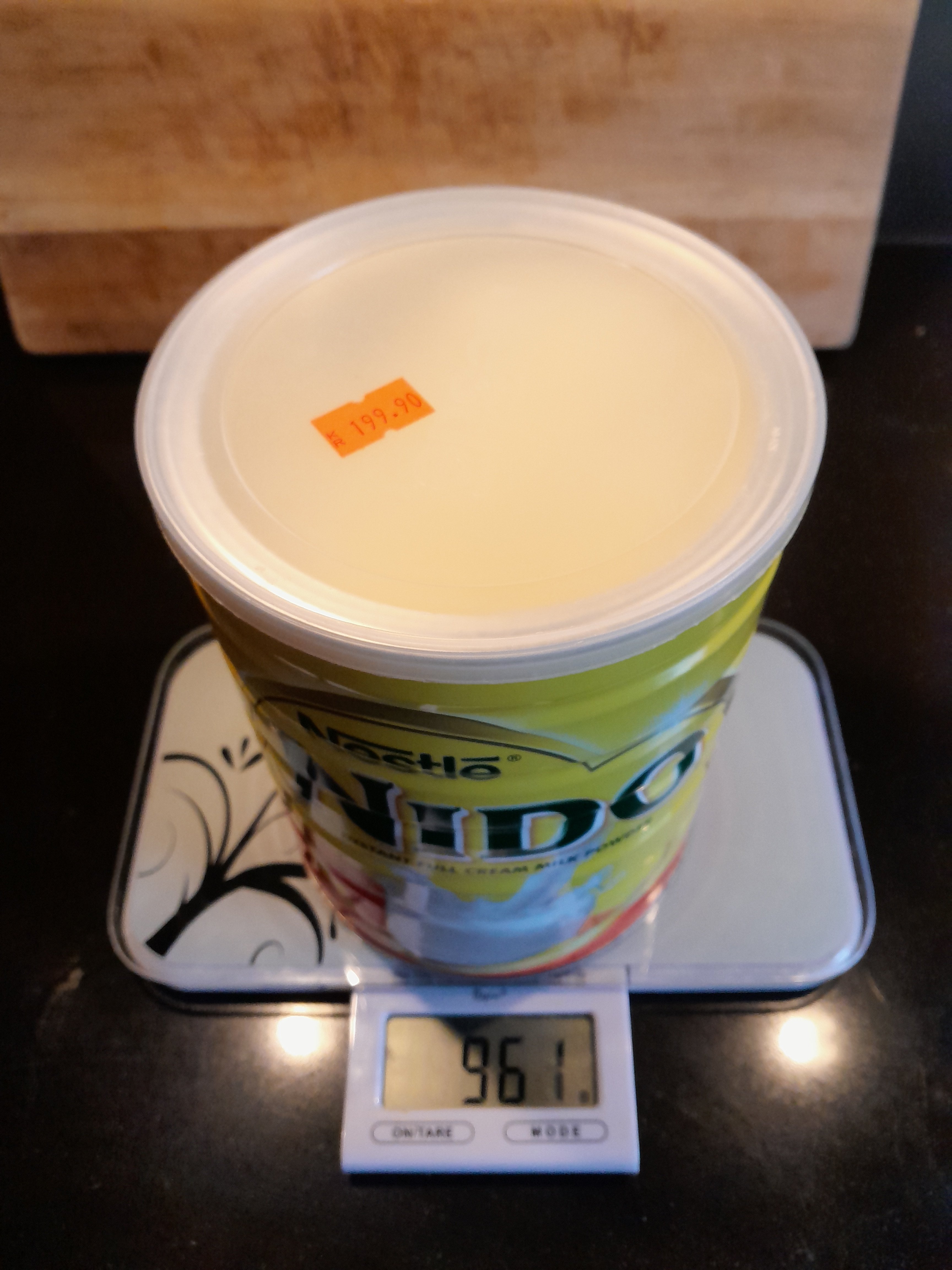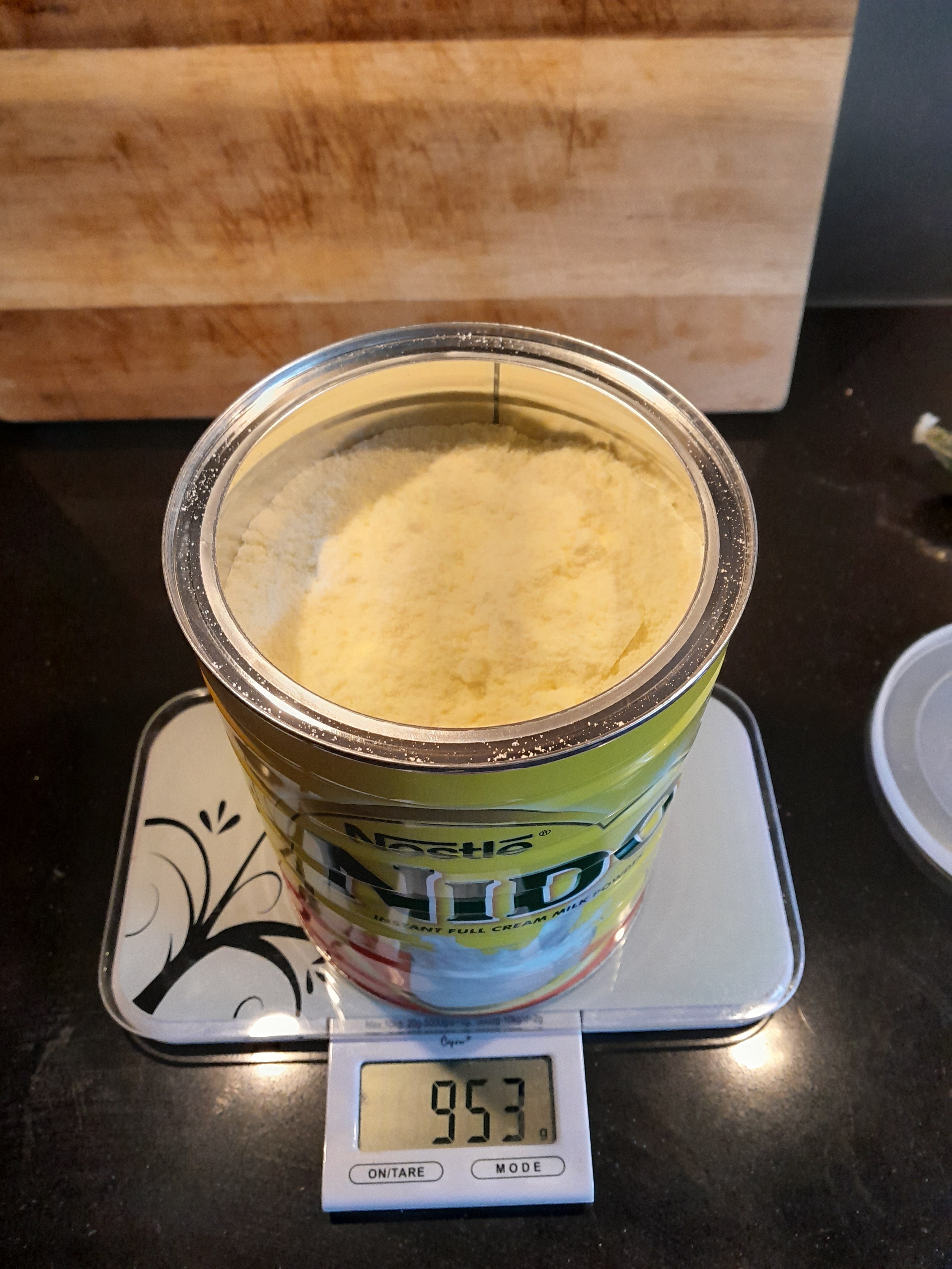 Nesten full 900 g. boks med melkepulver, Nido fra Nestle. Begynte å teste ut dette med en mindre boks først, og begynte litt på denne, men har funnet ut av skummetmelkpulver er bedre for meg. Hyggelig om noen vil overta for mot vederlag, fortrinnsvis hentes her i Oslo, (ikke så veldig langt fra der Ole Høilands visstnok skal ha gjemt noe utbytte fra ranet av Norges Bank) 😉