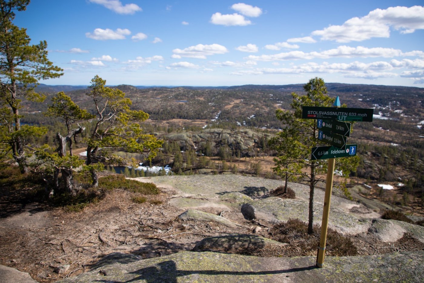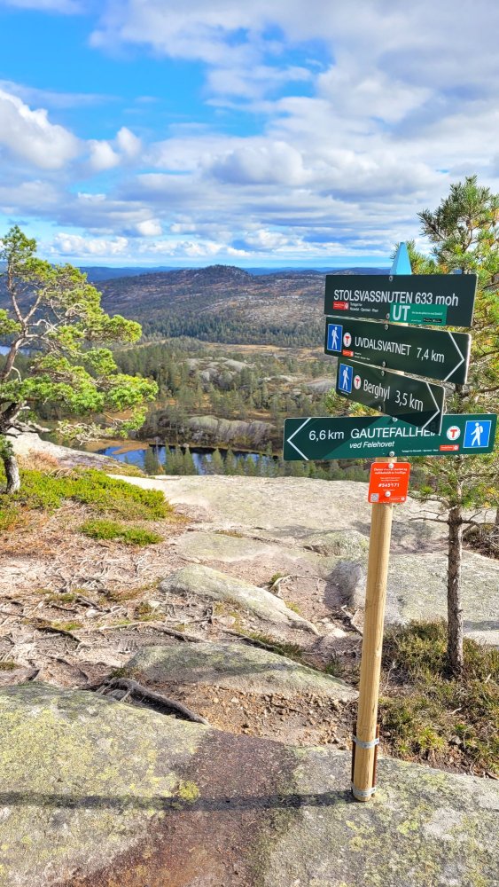 Tur på Gautefall igjen, mandag 21. April. Felehovet Sør - Stolsvatn - Stolsvassnuten og tilbake via Tollbutjønn. Gikk en del utenfor sti denne gang, for å bli mer kjent og se litt nytt. 19.8km / 6 timer. Stolsvatn og Stolsvassodden, med Mjeltenatten i bakgrunnen: Stolsvassodden. Var for mye vann til å gå ut til ytterste del. Stolsvassnuten: Oppe på Stolsvassodden, utsikt ned til Stolsvatn og bort på Mjeltenatten: