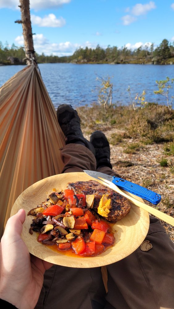 Takk, jeg har alltid likt Soulo, men trodde det var for trangt for meg som er 186cm/85kg, men det er det ikke fant jeg jo ut når jeg fikk testet det. Sekken på bildene er en 65l sekk, så passet helt greit i ytterteltet. Etter denne turen likte jeg teltet enda mer faktisk. Har jo et Enan jeg må få testet også, og liker jeg det like mye, så ryker nok kanske Unna'en, men jeg er særdeles dårlig på å selge ting, og kan jo være kjekt å ha til andre turer der man ikke trenger Soulo. Men sitter nå med 4 Hillebergtelt.. Unna, Soulo, Enan og Allak. Og planen er egentlig å ha ett telt for "alt mulig" vær - Soulo. Ett lettvektstelt for varmt sommervær uten fare for heftig vær - Enan, og ett telt om man har med selskap - Allak. Så Unna er egentlig litt til overs.. Men kjekt å ha 😜 Takker, den fjøla var veldig kortreist heldigvis, da den lå ved en bålplass rett ved. Så den ble lagt pent tilbake. Stammer nok fra den lille bua som er bygget ikke langt fra der jeg hadde teltet. Har flaks med å stadig finne noe småplank eller større flate stein når jeg er på tur, liker å ha det som underlag Var en tur i Hønsevassdalen sommeren 2023, og var fint der nede. Mye småfisk som vaket der, men det var og sykt mye mygg og knott der, så ble ikke så mye utforsking den kvelden eller dagen etter..