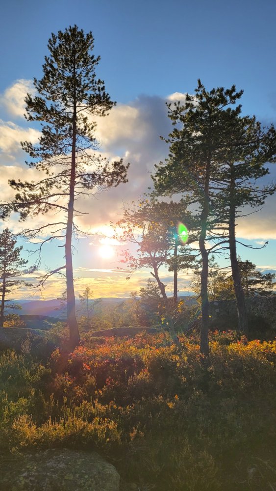 Vært lite posting her inne siste halve året, selv om det har blitt en del dagsturer til kjente områder. Har savnet overnattingsturer, og kom meg endelig til Lifjell en tur forrige helg, med utgangspunkt fra Grimås. Det har vært mye dårlig vær de siste helgene, og ukene før denne turen, men denne helgen meldte Yr lett overskyet og sol, så da var det bare å pakke sekken! Men Yr tok feil fant jeg ut av på vei opp fra Grimås. Ble 2t gange i regn. Men var heldig og det ble både oppholds og sol når jeg nærmet meg planlagt teltplass ved Store Holmetjønn. Og glad jeg tok valget med å gå med høye fjellsko, og ikke lave Salomon Speedcross, denne gang, for de fleste som har vært på Lifjell vet det er vått, men denne gangen var det ekstra vått, og mange stier var blitt til små bekker og søledammer. Kun mobilbilder denne gang, selv om det lille turkameraet var med. Men pga fuktig vær, så ble det igjen i sekken. Dag 1 - Lørdag: Startet i greit vær nede på Grimås, men det var lite vind og høy luftfuktighet. Sekken veide 19,5kg. Regn oppe ved Øvre Tvitjønnan - Hadde tidlige søkt ly under et grantre i håp om at det skulle gå fort over. Men det gjorde det ikke, så da ble det å få på seg regnponchoen. Regnponchoen ble nesten like vått på innsiden av ponchoen som på utsiden... Det er slike opplevelser man kan få når man får "dårlig vær" på tur, og det er jaggu verdt det. Og passende at det var her jeg skulle telte også, ved Store Holmetjønn. Brukte ca 2,5t opp hit fra Grimås, med et par pauser og prat med andre turfolk. Teltet er oppe - fikk testet Hilleberg Soulo for første gang. Var det eneste fornuftige teltvalget mitt denne helgen, da jeg vet det kan bli fort værskifte på Lifjell (og Yr ofte tar feil...) Veier kanskje litt mye for noen som solo-telt(2,4kg) men jaggu så enkel og kjapt å sette opp og ta ned, til og med i forhold til Unna, som jeg også har. Mye fisk som vaket, prøvde å fiske, men ikke et eneste tegn til at de var interesert i slukene jeg prøvde utover kvelden... Så litt insekter, men ikke mye - men tok ingen sjanse med tanke på lite vind og at det hadde regnet mye... de få som var der ble ganske innpåslitne. Sen og enkel middag i solnedgangen... Soulo i solnedgang Litt kveldskos Dag 2 - Søndag: Våknet rett før soloppgang, men la meg til å sove litt til, hadde ikke noe planer om å haste noen vei i dag.. slik jeg ofte gjør på tur. Bilen og turen hjem får vente, denne søndagen skulle nytes på Lifjell til det fulle! Morgen fra teltet. Selv om sola skinte på teltet, ble det ikke så varmt innvendig som Unna har blitt tidligere. Kanskje pga kortveggen sto mot sola..?! Men vått, ja ytterduken var våt av kondens både på innsiden og utsiden, men kanskje ikke så rart, så vått det var på bakken. Skotørking i sola, NRK P1 på radio, forsiktig lyd av småbølger som traff land og varm kakao... fjellkos! På vei til bilen, men i feil retning. Gikk fra Store Holmetjønn og opp til Blomtjønneggin og ned eggen man ser rett fram, for å dreie mot venstre og mot Store Tjorbu. Gikk til de mindre vannene mellom Blomtjønneggin og Vesle og Store Tjorbuvatn. Prøvde å fiske, men det var ikke tegn til noe som helst... null fisk! Været skiftet til mørke skyer, så fant meg en fin plass for å ta sen frokost/lunch mens det enda var oppholdsvær. Men heldigvis, selv med mye mørke skyer som passerte rett over, kom det ikke en eneste regndråpe resten av dagen! Ikke noe fisk å få her heller... helt dødt overalt. Hytta ved Vesle Tjorbuvatn: Etter å ha brukt 5 timer på turen tilbake, var det nesten litt kjipt å komme til bilen - Krysser fingrene for at man kunne fått en fin høsttur i telt her igjen snart før sesongen er helt over!