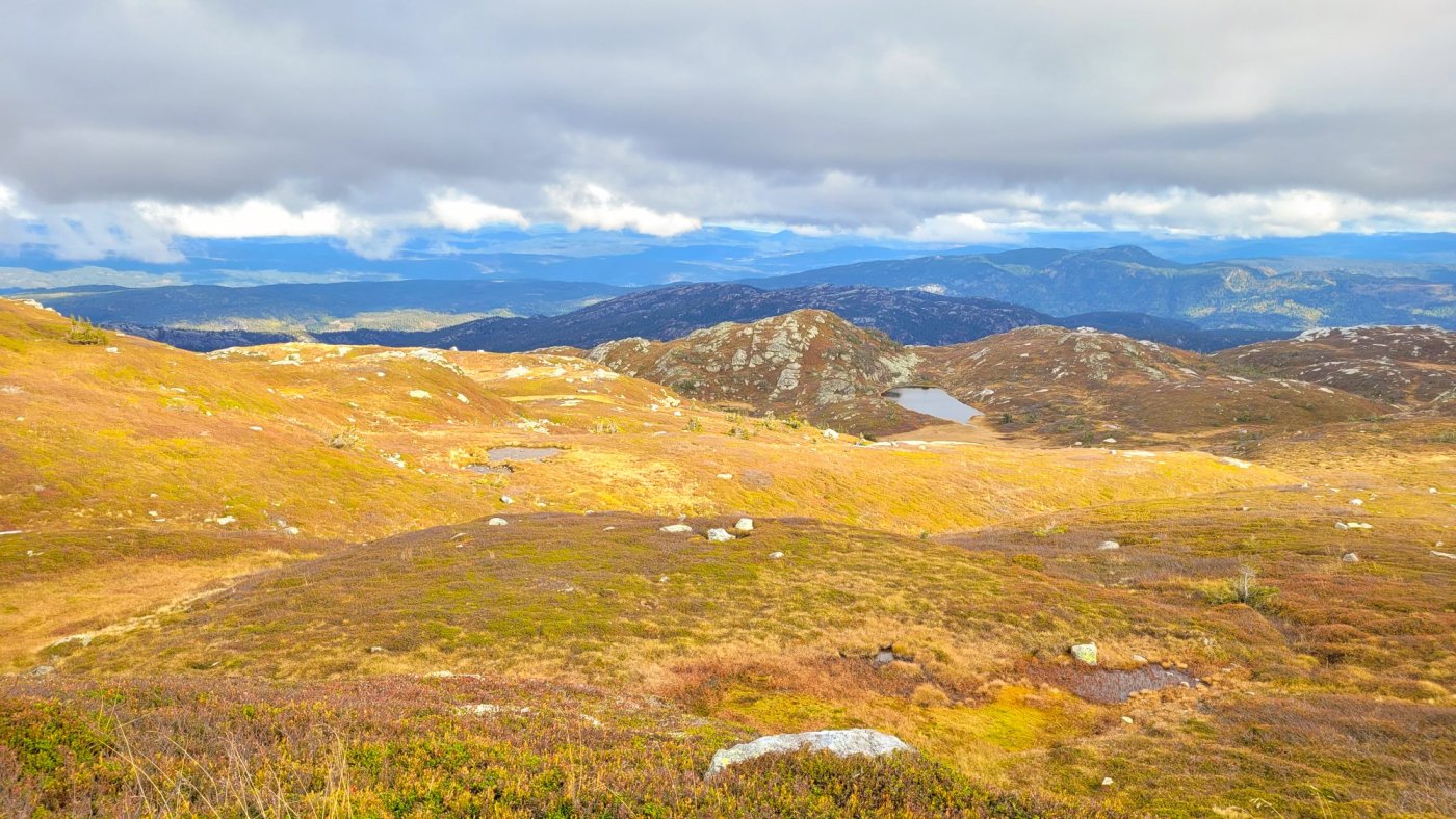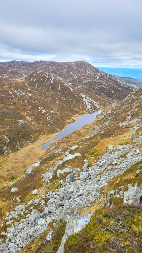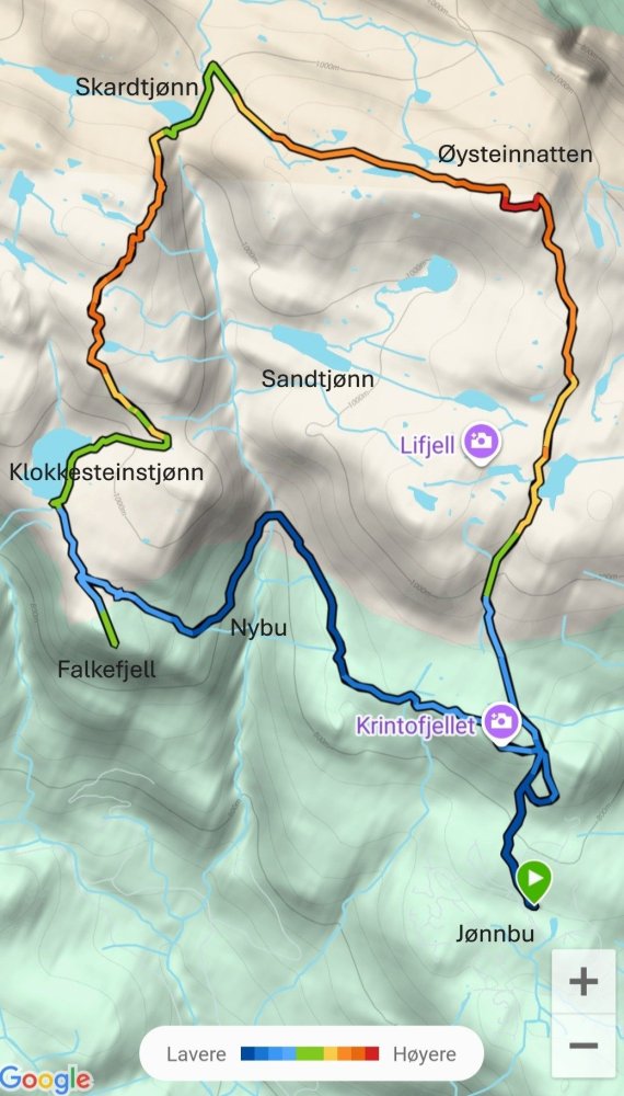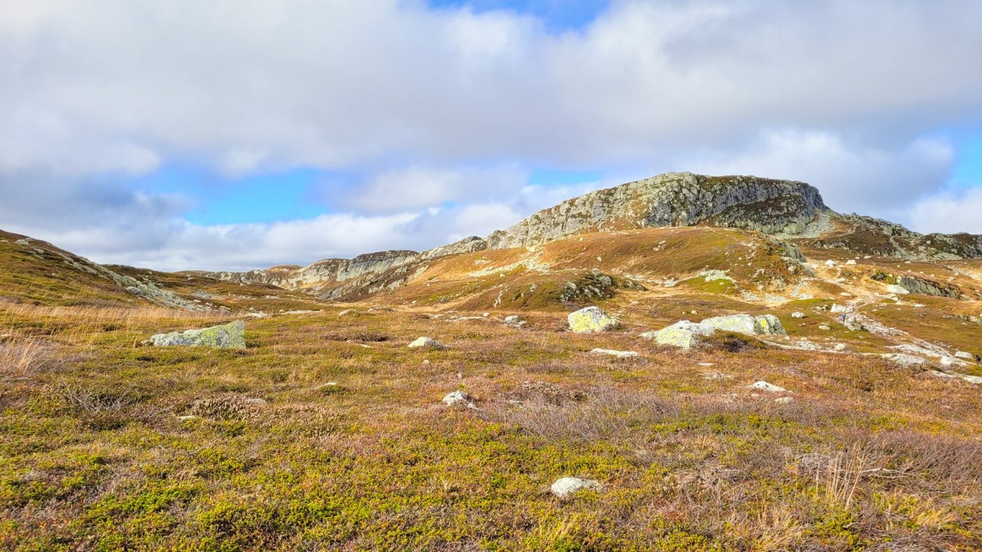 Dagstur på Lifjell - Lørdag 28. september: Var lavtskydekke og en del vind når jeg startet turen ved Jønnbu, men lettet utover turen og vinden roet seg litt. Ble en god høsttur, og forhåpentligvis ikke den siste for i år... På vei mot Øysteinnatten På vei ned fra Øystennatten og på vei mot Skardtjønn. Denne dagen gikk jeg på baksiden av eggen ned fra Øysteinnatten pga vinden. Er ganske fint å gå her nede også, og man oppdager flere mulige teltplasser. På vei opp i høyden fra Skardtjønn, og ser ned Oksladalen og Langetjønn: Utsikt over mot Sandtjønn: Mot Jøronnatten: Klokkesteinstjønn: Noen etternølere som ikke vil ned fra fjellet.. En liten snarvisitt innom Falkefjell før man begynner turen ned mot Nybu og tilbake mot bilen... Store stein som er delt er gøy, og her ser man faktisk to, den jeg står med, og den som er lenger bak Nede ved Nybu: Oppover Oksladalen: