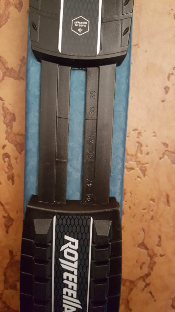 Kjøpte meg nylig et par fjellski (med bindinger) fra Fjellsport.no, og ba dem om å montere bindingene for meg, tilpasset str. 44 (som jeg regnet med å bruke i skostørrelse). Nå viser det seg at jeg trolig må opp til str. 45. (44 er som regel en romslig skostørrelse for meg, men Madshus Vidda, som jeg har prøvd på foten nå, var altfor små og smale i str. 44.) Jeg har null erfaring med montering og tilpassing av bindinger, og har heller aldri prøvd BC-bindinger før. Det jeg lurer på er om disse bindingene (avbildet) er tilpasset 44 og 45? (Jeg ser tallene, men vet ikke hvordan de skal tolkes.) Beklager om spørsmålet var uforståelig. (Det jeg lurer på er altså om 44-47 burde stått "i midten".)