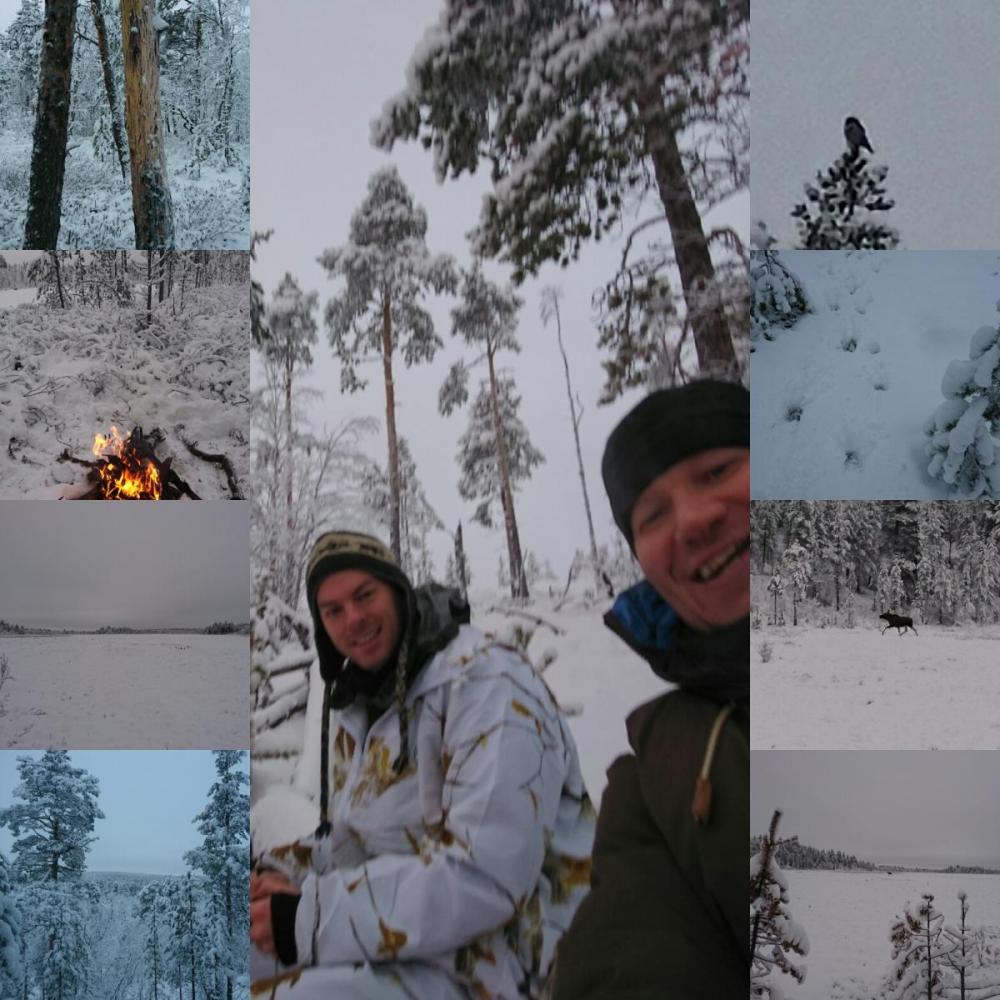 Ny jaktdag i nytt område denne lørdagen og. Vi satset på å kjøre sørover, altså oppover dalen nesten helt til nasjonalparken, tok av like før Gjøken innover skogsveien mot Tommamoen. Parkerte like ved Rømlingåsen og la i vei innover skogen. Mye mer snø der oppe enn i området rundt Svanvik og mildværet som har vært nærmere kysten hadde ikke nådd så langt inn. Til tider tungt å gå da vi havnet i store felt med bjørkeris og 5-10cm nysnø over landskapet. Tiuren var ikke å se, fant noen spor og bevis på at den fortsatt beiter bær på bakken og holder seg nede istedenfor oppe i trærne. Dyrelivet i dalen treffer man stadig på når man er ute å går. Dukket opp en elg på kloss hold og så haukugla og de vanlige småfuglene i skogen. Litt overskyet men ble en fin dag i skogen selv om vi ikke fikk noen fangst denne dagen heller.