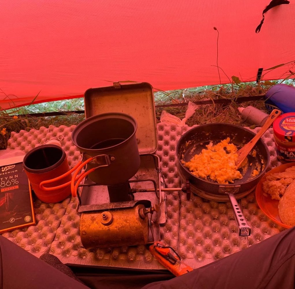 Dette teltet ble enda mindre fristende med «hypercurve» innerteltet. Det er vel et forsøk på å komme med noe nytt og «bedre». Har man stort innertelt, som på Unna, så kan man hekte løs et hjørne på innerteltet om man absolutt trenger større yttertelt enn det som allerede er der. Men trenger man så mye mer enn en våt sekk, våte støvler, og litt annet småknask uti der da? Jeg synes innerteltstørrelsen på Unna er helt super. Man får faktisk plass til å snu seg, skifte klær, tørke litt klær i taket, plass til tingene sine, og plass til matlaging. Åpner man døren mellom inner- og yttertelt får man med en gang god plass til koking, og et tørt gulv i nesten hele området. Setter man en teltplugg i bakken kan man faktisk trekke inn innerteltet på midten, lignende det buete innerteltet fire innlegg over. Jeg flytter ofte skumunderlaget over «dørterskelen» i overgangen mellom inner- og yttertelt, så får jeg flatt gulv som passer fint til matlaging