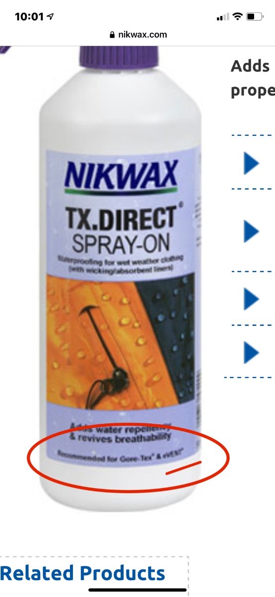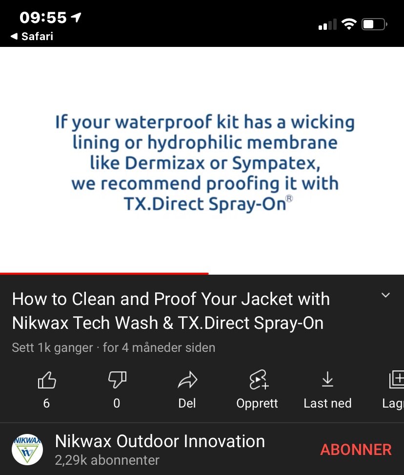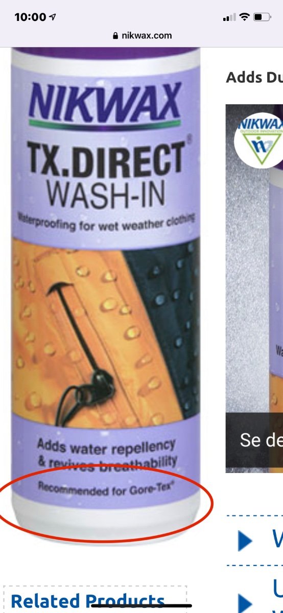 5. Nikwax har oppdatert rådene ang. wash-in vs spray-on på membranklær, se bildet. Goretex er vel ikke ett hydrofilt membran, men ett med mikroporer, og da skal wash- in være ok sånn jeg forstår. Impregneringen tetter ikke porene, det ville den da ha gjort uansett om du behandler innsiden eller utsiden, siden den trekker gjennom ytterstoffet og treffer membranen. fått noe svar?