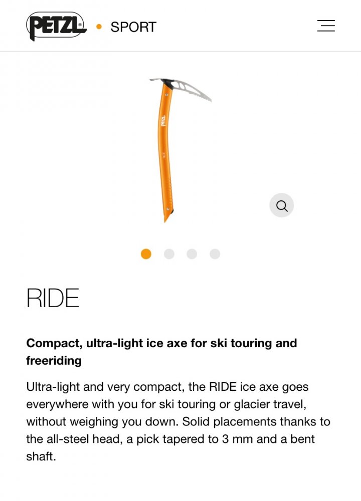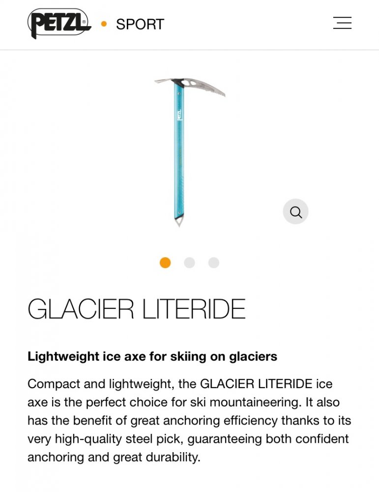 Jeg har googlet isøkser i en uke nå. Tiltenkt bruk er Høgruta i Jorunheimen på ski. Altså toppturer på ski, og krysninger av isbre på ski, og til bruk sammen med stegjern. Jeg har landet på at det må bli Petzl Glacier Literide, eller Petzl Rider, som egner seg bra. Men jeg har ikke klart å lande den avgjørelsen enda Rider er 45 cm, bøyd skaft, mangler pigg, og veier 240g: Glacier Literide er 50 lang, har pigg, rett skaft, litt større øksehode, og veier 330 gram: Foreløbig tenker jeg at Literide er best om man skal krysse breområder på ski, fordi den er bedre til å hugge trinn med i følge tester, og har piggen. Men dette har jeg null erfaring med, så hva vet jeg.
