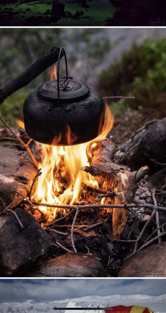 25. Her er mine tre. Ikke sikkert det samsvarer med hva jeg tenkte på forhånd Men om jeg skal prøve å sette ord på det: 1: Kaffekjelen som jeg synes ofte synes er kjedelig, ble mye mer levende med levende flammer. Jeg kan høre lyden av bålet. 2: Bilder med pulken var tøft. Her og kan jeg høre lyden av pulken som blir dratt forbi. 3: Og bildet med teltleiren hadde vert ganske kjedelig uten teltleiren. Da hadde det vert bilde av «ingenting», mens nå ble det ett flott bilde som viser hvor små vi er i ett så stort landskap 👍 Jeg legger tilfeldigvis merke til at på ingen av disse 3 bildene er det folk som sitter i ro og venter på at bildet blir tatt, eller ser inn i kameraet. «Se her og smil» bilde, som desverre alt for mange tar.