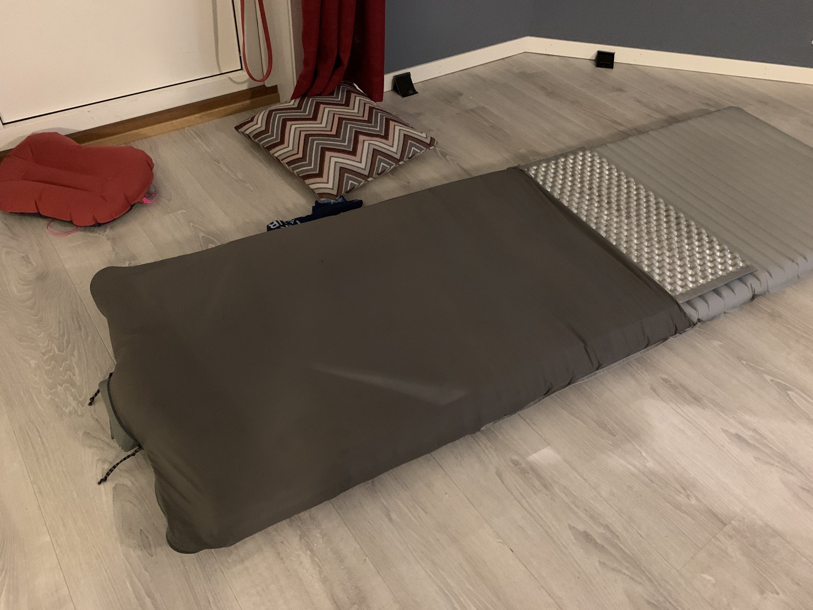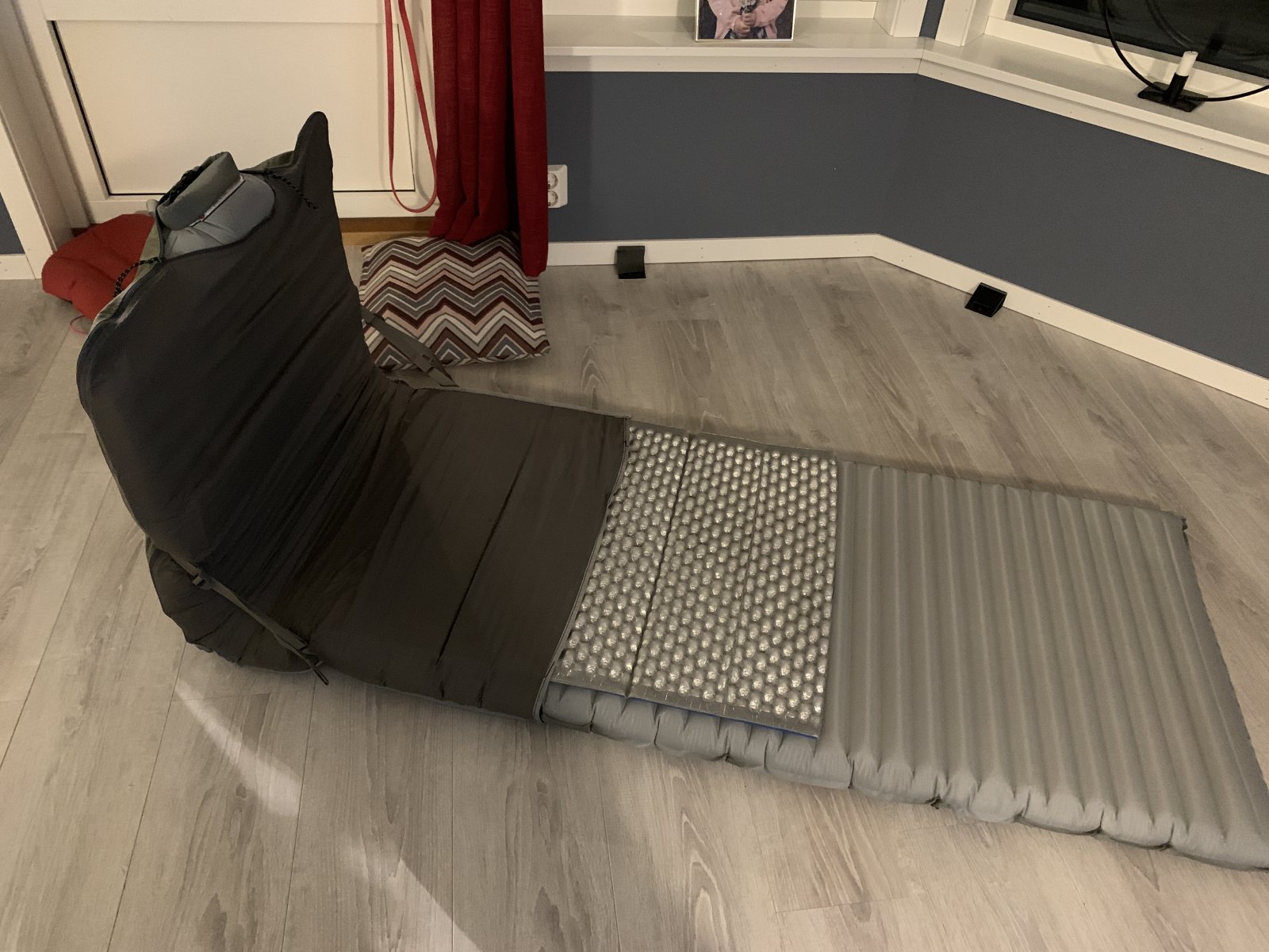12. Men det blir bare produsert ett stk. Ihvertfall av meg uten særlig syskills. Kjøpte meg for en stund siden ett stk. exped MW stoltrekk. Det var fabrikasjonsfeil på, så jeg fikk ett nytt, det gamle ble bare liggende. Kjøpte meg nylig ett nytt underlag, themarest xtherm max large med speed-valve. I stedet for å kjøpe nytt stoltrekk, sydde jeg om det ene defekte Exped stoltrekket jeg hadde liggende. Fungerer helt upåklagelig. På bildene har jeg ett halvt z-lite oppå, men det er kun fordi jeg synes Xtherm underlaget er mye bedre å ligge på med dette oppå. Fungerer såklrt like bra uten. Tok meg en time å sy om. Vekten endte på 388 gram. Stoltrekket kan være på hele tiden. Jeg trekker ut stengene under transport, og ruller underlaget rundt stengene. Exped leverer med en pakkpose sammen med stoltrekkene, som er laget for dette.