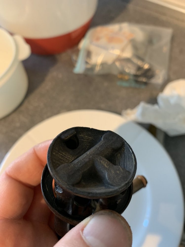Da har jeg demontert den, det ser ut som flammesprederen har vert filt ned på ene siden? Hva skal være poenget med det? Trolig derfor flammen ikke er helt symmetrisk. Selger informerte ikke om det ved kjøp, jeg bare spirte om brennerer var i orden, og det var den. (jeg har kjemisk metall fra biltema, det skal tåle 150 grader. Vet ikke om det er nok, i så fall kan jeg legge på litt og pusse ned til riktig form).??? -