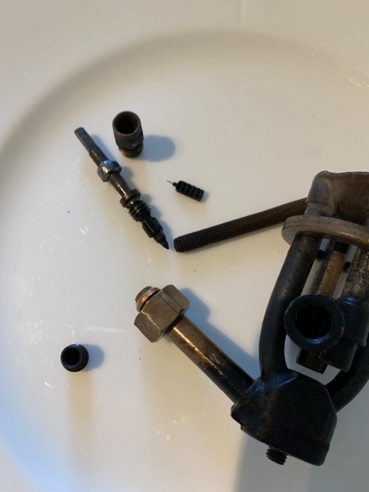 Jeg trodde 111 bråk kom originalt med lær. Men er det o-ring som er originalt vil jeg holde meg til den, det føles mest riktig ut i magen Trikset jeg har funnet ut med o-ring er å bruke symaskinsolje (i motsetning til siliconfettsom jeg bruker på lærpakningen). Men ofte glir den for godt og glipper med symaskinsolje, da trekker jeg ut o-ringen og tørker av så fungerer den bra igjen. Lærpakningen bare fungerer hele tiden like bra, inntil du har bensin på tanken og returventilen lekker... Da kan den bli hard. -