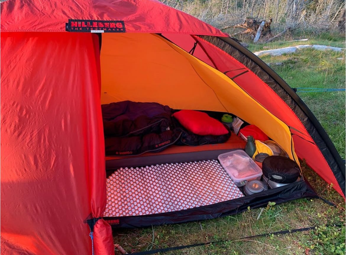 Hilleberg Unna synes jeg er bra og romslig for vekten. Eneste ulempen er at her er også kun myggnetting i ene delen av innerteltet, som også kan lukkes helt. Skulle gjerne hatt mulighet netting i hele døren (men jeg har mesh-teltet også, til bruk når det er veldig varmt). Til tross for det, har det faktisk ikke blitt for varmt i dette teltet med det originale innerteltet - trolig på grunn av at du kan åpne hele fronten og rulle opp duken langs bakken på baksiden.