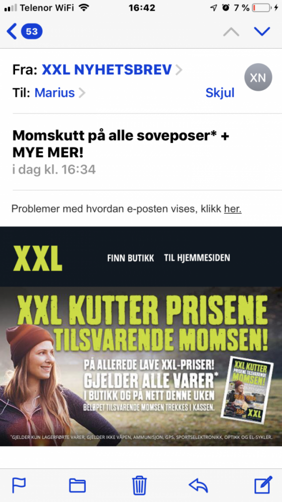 Oj! Samme som koster 5200kr hos fjellsport...(!). Synes prisen var bra, uten at jeg kjenner til posen 👍 Jeg fant ikke ut hvilke type konstruksjon denne har, men det er noe å vurdere også. Cumulus alaska bruker Dobbel sakset bokskonstruksjon, da skal det mye mer til for å danne kuldebroer, men vekten øker litt. Posens form har også en del å si, men det er jo ikke så enkelt å vite før man har prøvd posen hjemme. Fyllkraften(dunspensten) på dunet ser fin ut. Posene med aller høyest fyllkraft er mer følsom for fukt, og komprimeres lettere slik at kuldebroer oppstår lettere (men tar mindre plass i sekken) og er dyrere. Der må man veie fordeler opp mot ulemper også. Sover man på siden kan man vurdere om man vil ha like mye fyll foran og bak på posen, sover man kun på ryggen kan man velge en pose med mer fyll enn normalt foran. Dette er en av fordelene med å skreddersy en pose på eks. cumulus sine sider - hvis man har slike spesialpreferanser. -