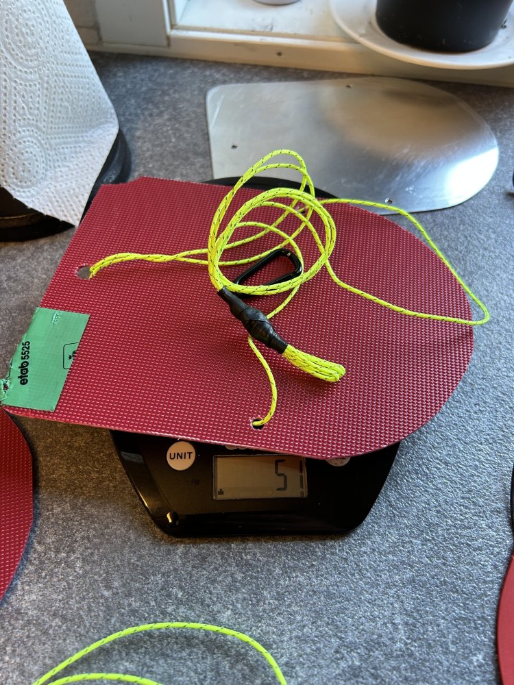 Jeg har brukt disse snøankrene i plast, over mange år nå. Og de har fått testet seg i mye forskjellige typer snø, og skikkelig uvær flere ganger. Jeg setter små karabinkroker på de, fordi at de er mye enklere å bruke da, og man kan bruke barduner med èn strammer siden den glir fram og tilbake i karabinen uten å fryse fast, hvis karabinen er over snøen. —————— Disse er virkelig helt rå! De gir absolutt mest feste per gram i forhold til noe annet jeg har brukt. Størrelsen er 20cm høy, 16cm bred. Jeg gremmes hver gang jeg må bruke andre ting på bardunene. Snøanker er kjappere, lettere og mye bedre på barduner, og fester i all slags snø. Ski og staver er ypperlig å bruke langs duken på hver kortende på tunnelteltet. Og derfor har jeg med ett snøanker per bardun. Snøankrene er også enkel å pakke sammen uten at det blir surr, om man gjør det riktig: Legg ankrene lagvis i posen, samme vei med et sett tråder mellom hvert anker. Altså ett og ett anker med tråder ned i posen, samme vei. (Om det gav mening). De har kun ÈN ulempe, og det er at de er veldig lett å skade med spaden når de graves ut. De teipes fint, og fungerer så like bra igjen, men til hyppig og hard bruk vil de nok bli ødelagt til slutt. Men BILTEMA har 0,7mm aluplater, jeg hadde en gamme blikksaks liggende, fil og litt slipepapir. Og hva skjer?… Skadete plastankre: Vekt Plastanker, Swiss piranha: Vekt plastanker laget av skjærefjøl i plast: Vekt ferdig alu-anker av 0,7mm alu, med karabinkrok: De veier altså 60 gram inkludert karabinkrok. En økning på kun 13 gram per anker, som blir MYE sterkere. Man kan trolig bruke 0,5mm aluplater også, og allikevel få sterkere anker enn plastankrene, til samme vekt. Det som er viktig for grep og stivet er at man bøyer en liten bue på de, som på plasankrene, for da kan de nemlig ikke bøye seg bakover, og man får ett stivt anker med veldig bra hold. Jeg tenkte å bruke 4mm maljer i hullene, men de hadde ikke inne maljetang på biltema. Jeg har prøvd å gnage over tauet i hullene, men det går ikke. I storm og uvær er ankeret og tauet nedi snøen, så det er ikke bevegelse der heller. Man må selvsagt file og pusse vekk alle skarpe kanter på ankrene. ——— Jeg prøvde først med 1mm aluplate, og dette kan jeg anbefale for de som ikke er nazi på vekten, for da snakker vi anker som er solid nok for krig. Allikevel kun 74 gram for platen. ——— ——— EDIT: Lagt inn i «gjør det selv» forumet:- 33 svar