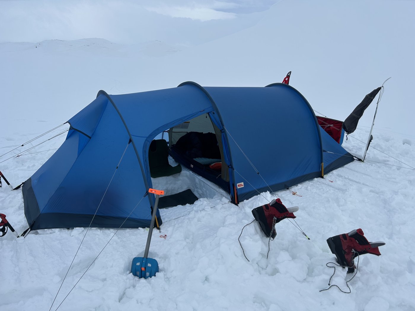 Takk En meget lærerik tur. Jeg rykket opp ett level i erfaring Pulken er tenkt som en liten slags levegg, og reduksjon av snøføyk. Men om det virker så mye, vet jeg ikke. Jeg tenker hvis det utgjør noen forskjell, er det til det bedre. Erik B. Jørgensen gjør dette alltid, og han har jo peiling (selv om han er danske). Abisko Endurance teltet stod meget bra ja. Brukte dobbelt stangsett denne turen (altså Abisko stengene, og Keb stengene). Jeg skulle til tider ønske at jeg hadde ett rent vintertelt, for psykens skyld, selv om det nok aldri var noen fare her. Strekket i duken fordeles over ett stort område, så det tåler nok temmelig mye belastning jeg tro. Bardunfestene er ihvertfall solide. MEN, festet til den midterste tørkesnoren røk når jeg tørket sko sammen med masse tunge våte klær. Over primusen… Ingen skade skjedd, men jeg forsterket alle festene i går kveld, slik at det ikke kan skje igjen:- 20 svar