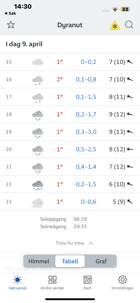Å grave seg ned til overvann er gull verdt, synes jeg. Friskt og godt vann på ett øyeblikk. Tror jeg så en åpen bekk på turen (men jeg så mest ned i hetten på turen). Jeg har en kloss tilfeldig glider (rosa glider), som jeg smører fellene med hver morgen etter de har tørket om natten. Samt at jeg bruker flytende impregnering før jeg dro hjemmefra. Det hjelper VELDIG mye, og mohairfellene mine takler våt snø, kram snø og fokksnø uten å klabbe. Så tørk fellene etter endt dag, og gnikk voks over de neste morgen, er mitt tips Ja, det er mine dekk som er merket i Åsebøskogen ja Jeg tenkte faktisk på å ta de hjem for sesongen nå, for nå blir det nok mest padling framover, og sikkert noen få randoturer før skiene settes vekk for sesongen.- 10 svar