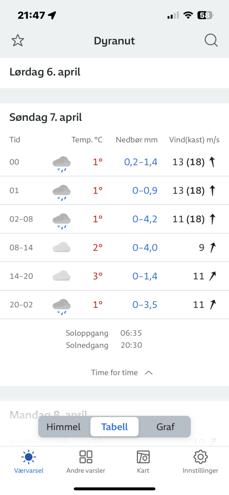Takk, der var den ja! Jeg har nettopp impregnert fellene som skal være med på turen. Først med flytende impregnering, deretter med voks (rosa glider). Jeg har med skrape og rød glider til å friske opp med, det synes jeg hjelper. Samtidig har jeg smørefritt belegg som kan fungere. Sikkert lurt å la vær å spa for mye snø rundt teltet om det fryser på.- 68 svar
