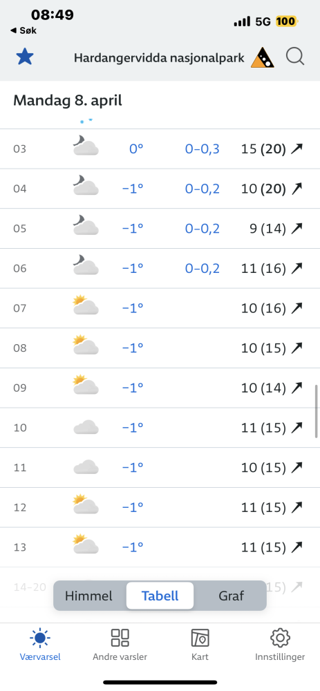 Med hensyn til værmeldingen, lurer jeg på om det er best å snu ruten for å få vinden i ryggen. Men da blir det vel mer stigning på turen… hva ville dere gjort?- 68 svar