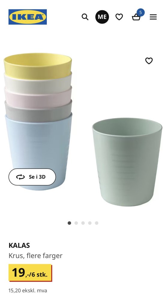 13. Plastkopper. IKEA Kalas. Artikkelnummer 004.613.79. Pris: 19kr for 6 stk. Fin størrelse. Tåler «alt», veier lite. Stables fint slik at man lett får med seg kopper til hele turfølget. Link: https://www.ikea.com/no/no/p/kalas-krus-flere-farger-00461379/